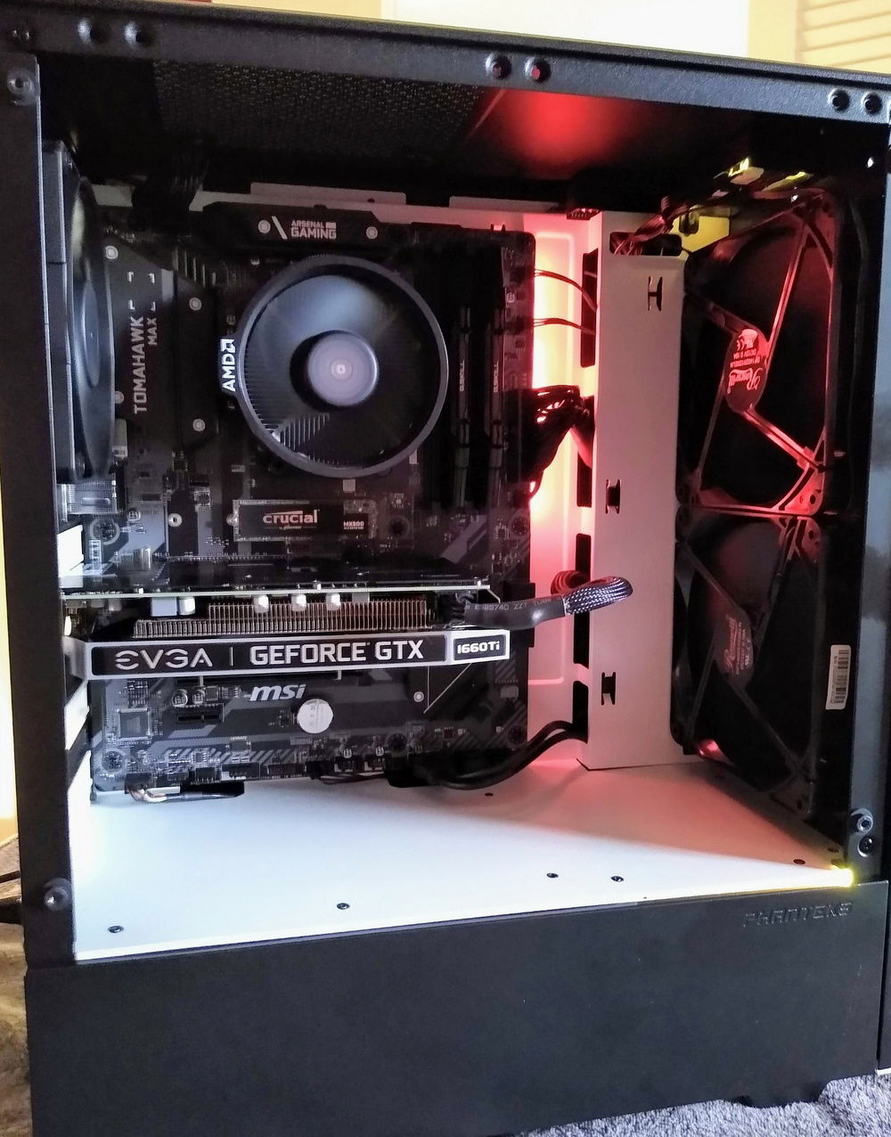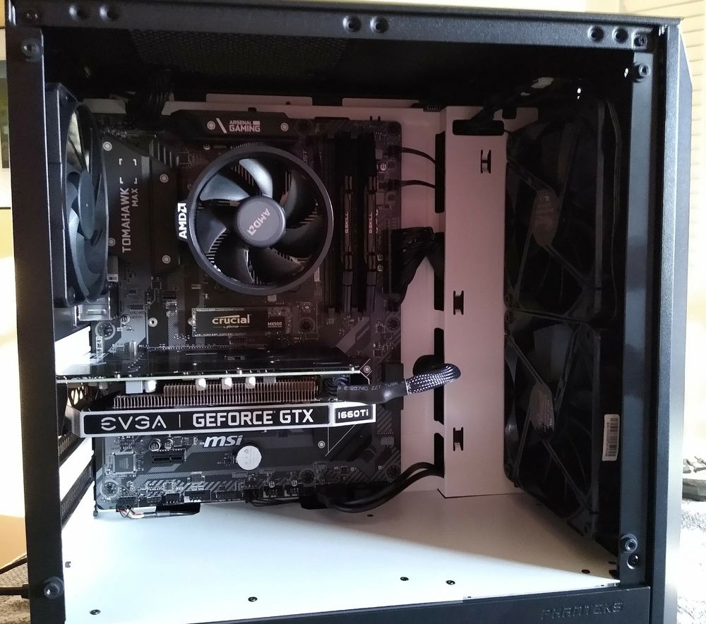 There were a couple needs that made this build challenging. More than 1TB of storage was a must, and a Nvidia GPU was requested (because my friend loves the Shadowplay videos I show off, and it's very easy to use). This generally hurts the price/performance ratio. However, the AMD's 5700 was $40-70 more at the time of purchase so the 1660ti was somewhat justified.