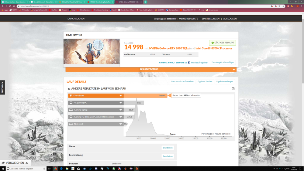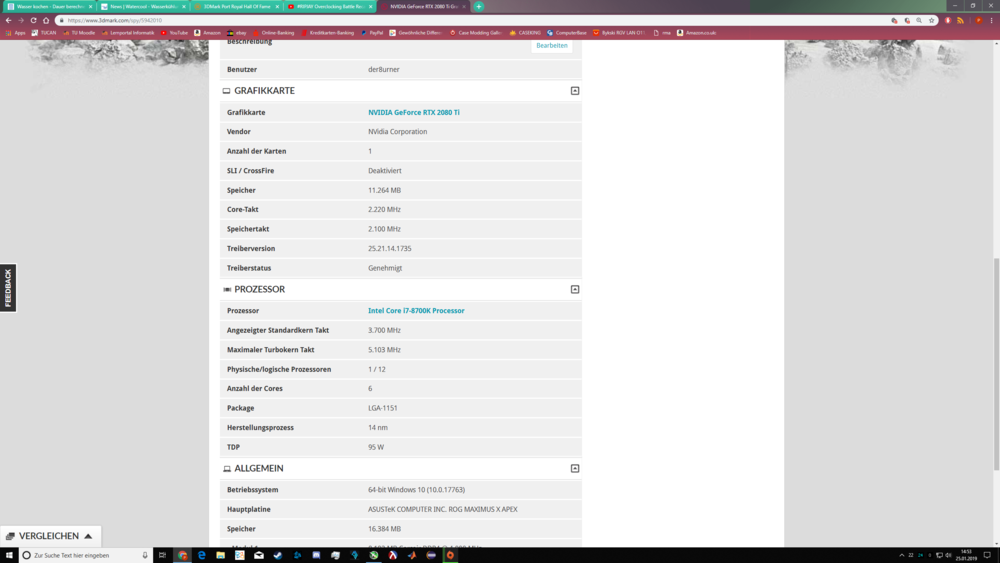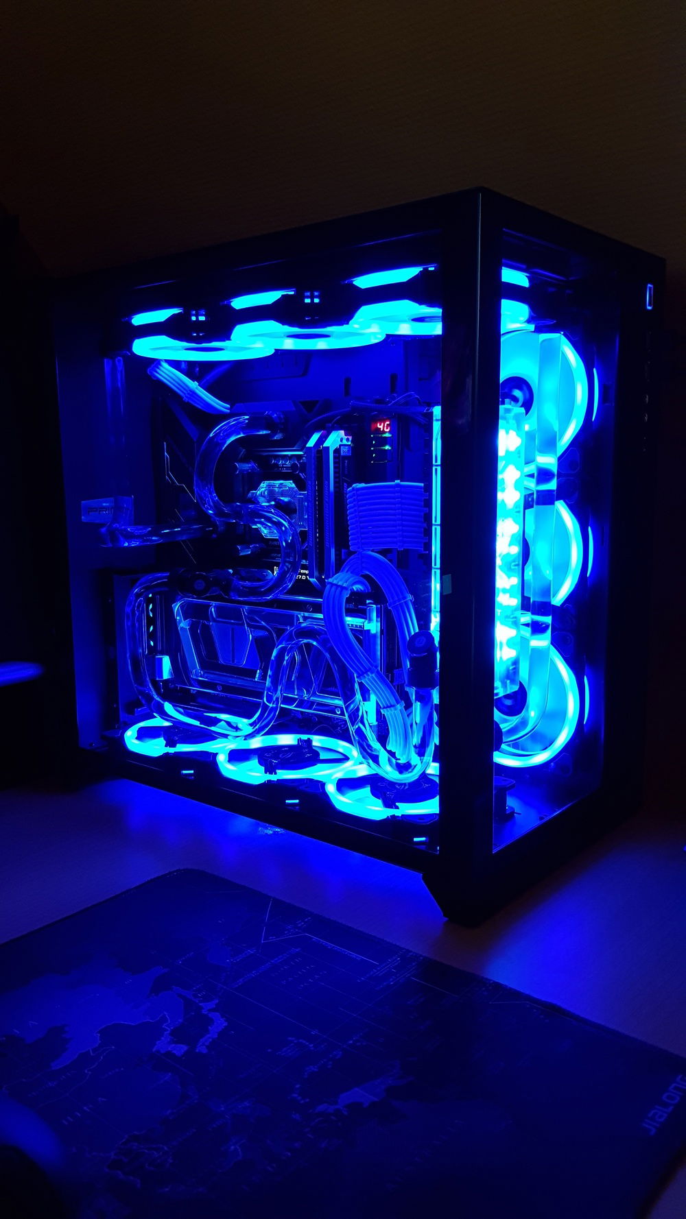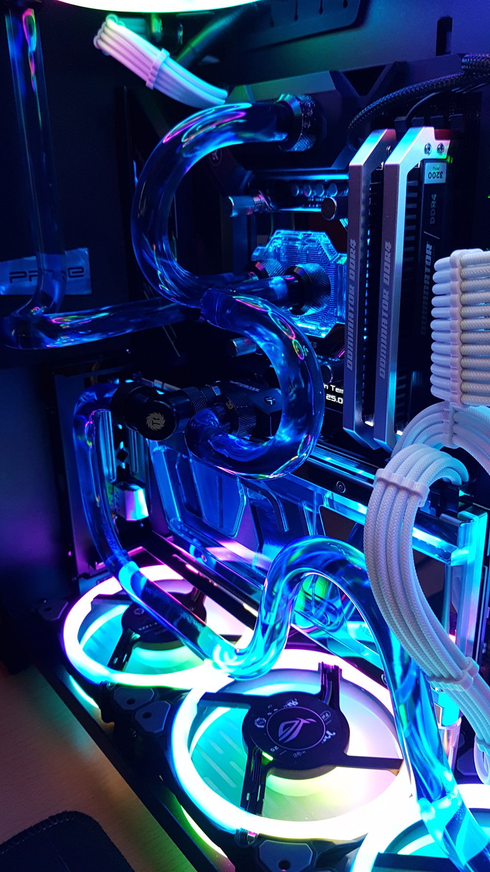 First I used my self delidded i7 8700k but now I upgraded to an der8auer i9 9900k which runs at 5.1 Ghz. My Gpu is cooled by an Watercool Heatkiller and I even made an YT tutorial for the installation.
