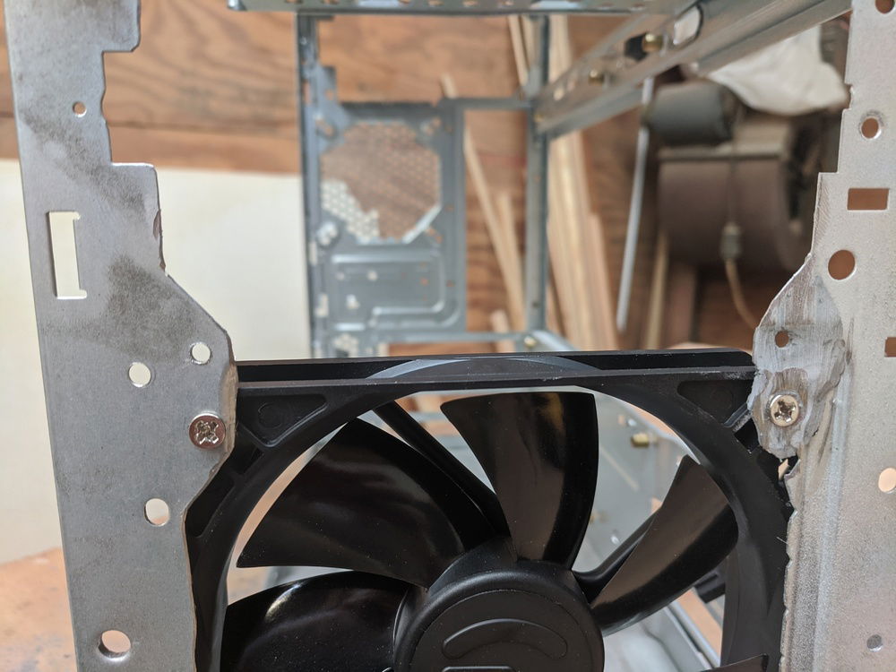 After cutting hole into case for a 120mm Intake Fan and painted interior black.
