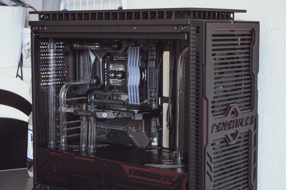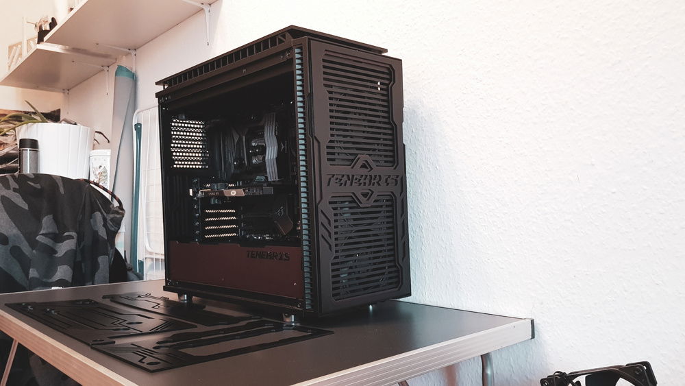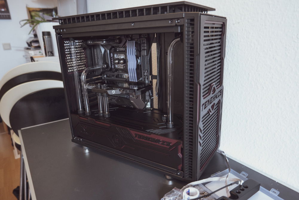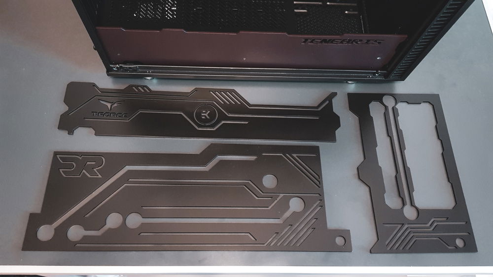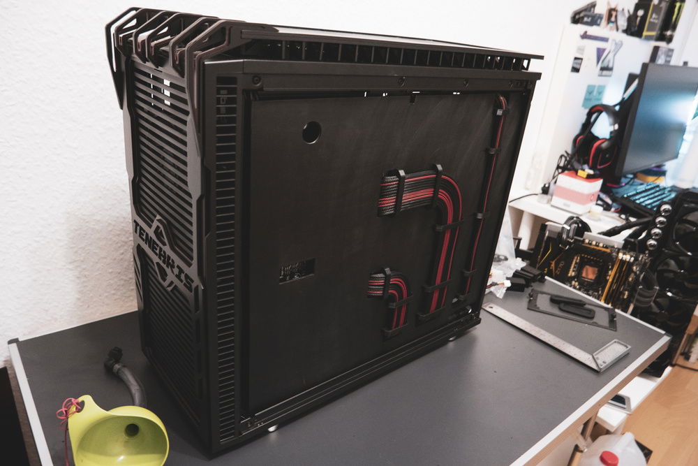 TENEBRIS means "The dark" or "the darkness" The whole build gets a mix from matt black and some darkred (RAL3007) details. The liquid gets darkred(close to black) and alos i use black fittings ! The design consists of different lasered acrylic panels. On the PSU shroud i will place a nice distribution plate as well. In this build i will also do a nice cablemangement on the backside of the mainboardtray with a full sleeved psu cable set.
