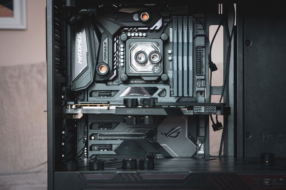 Asus Maximus X Formula Intel I7 9900k @5,2GHz Nvidia RTX 2080 Founders Edition 16GB TeamGroup T-Force Delta RGB 3000MHz Samsung M.2 960 EVO 500GB TeamGroup T-Force Delta RGB SSD 240GB Seasonic Focus Plus Gold 650FX