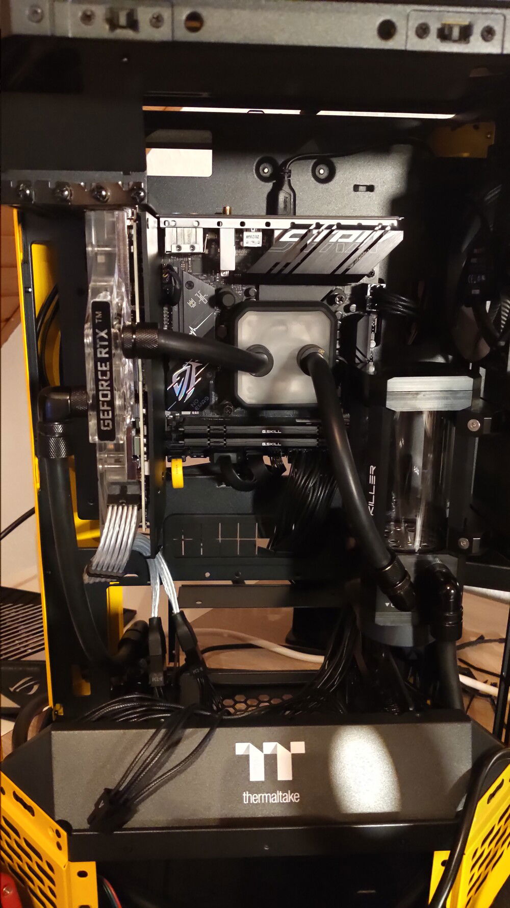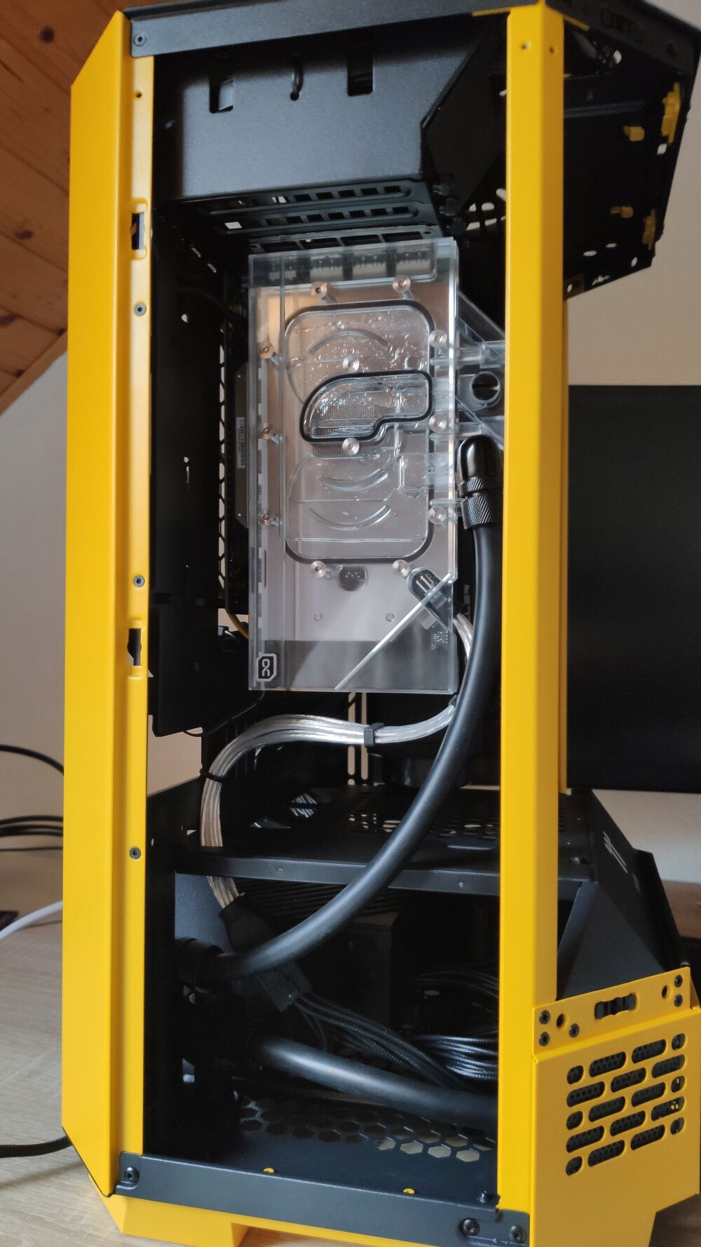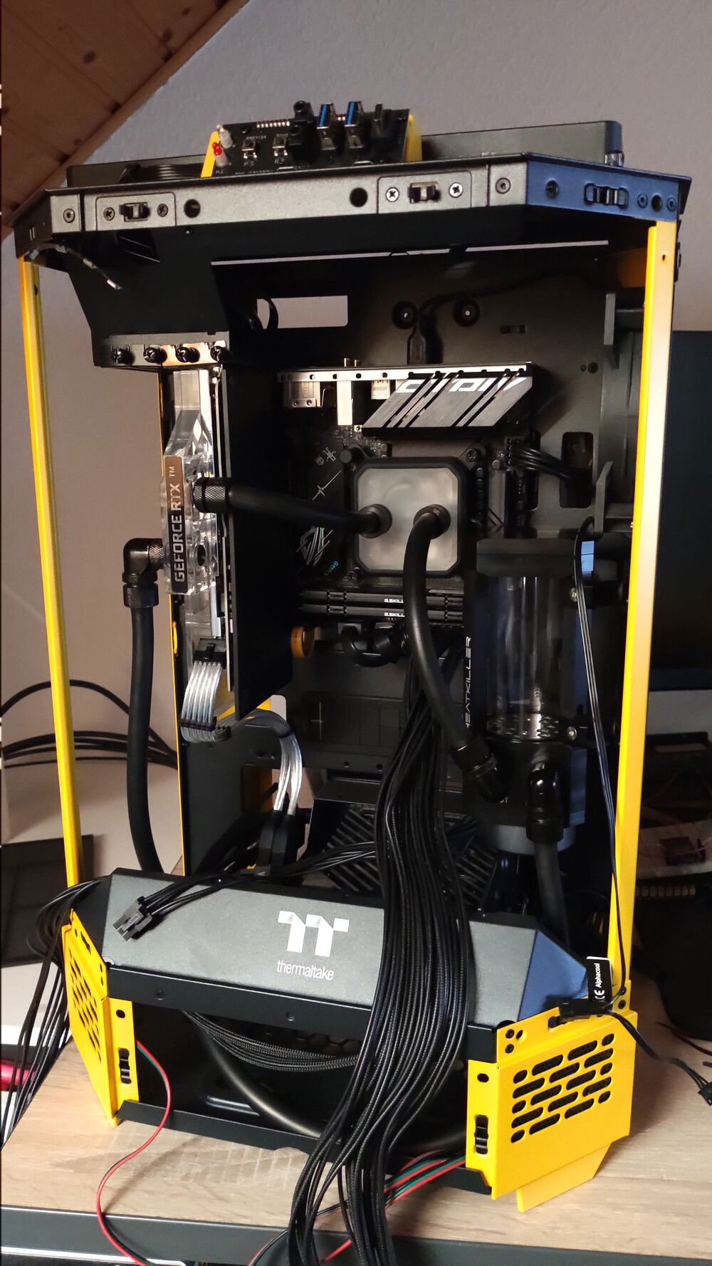 There are some things missing, like quieter fans (with ARGB) and some nice cables that match the theme colors. Also, the Heatkiller Tube will move outside the case onto the MORA, to make room for the fans. I will keep this build updated!