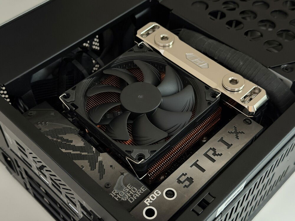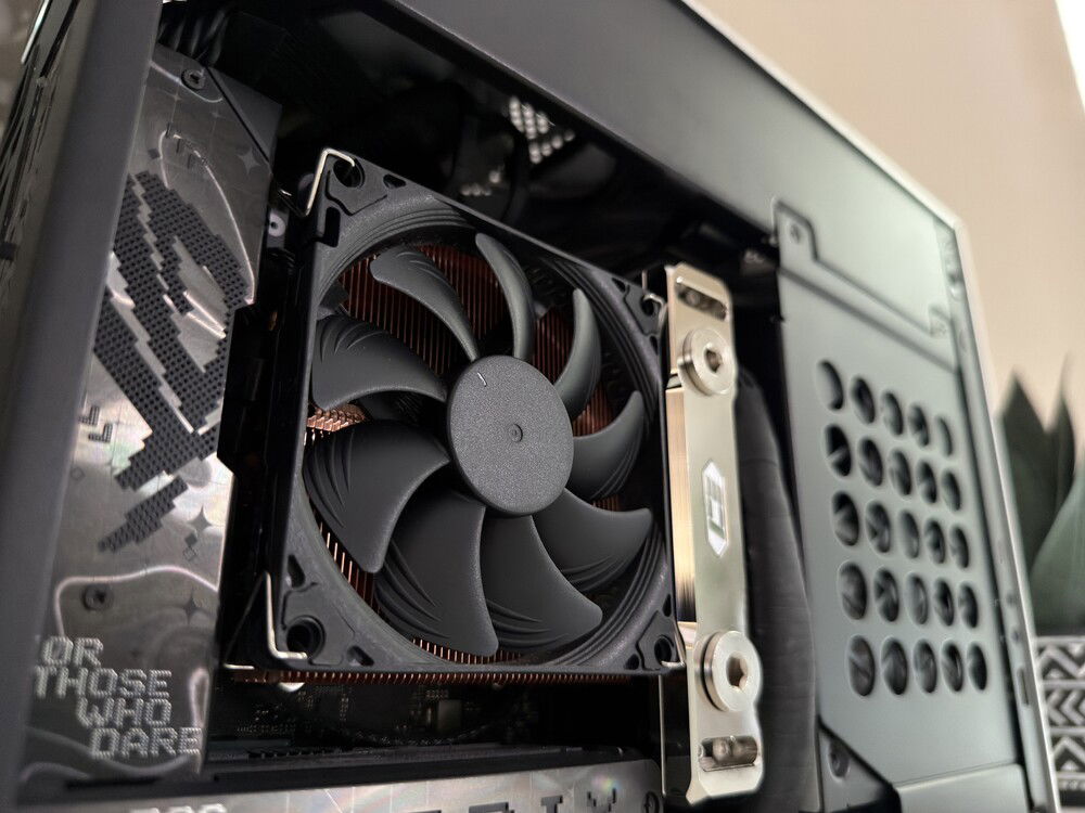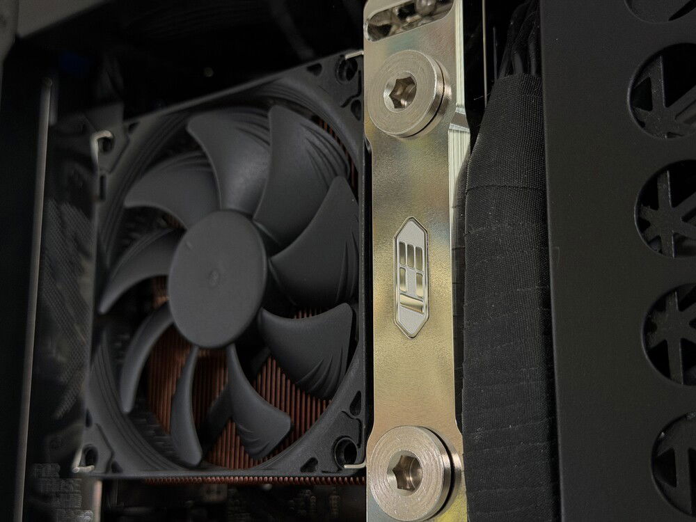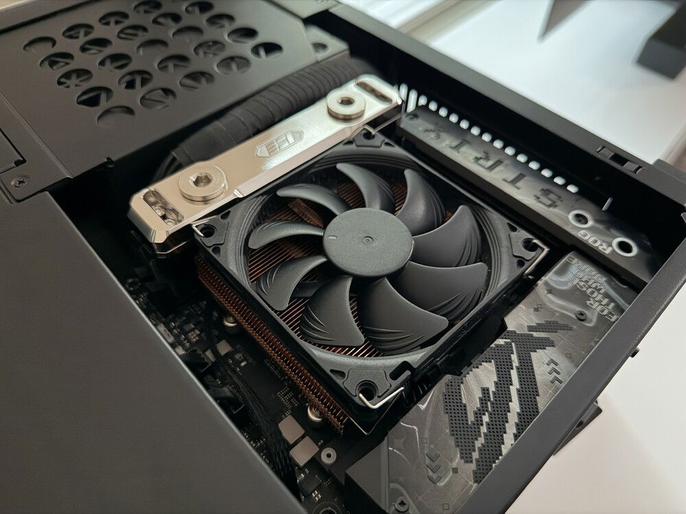 Due to the delidded nature of the CPU, it has been equipped with Thermal Grizzly's AM5 High Performance Heatspreader with liquid metal between the processor and upgraded IHS. The CPU itself is cooled by a Thermalright AXP90-X47 Full Copper heatsink and cooled by a single Noctua NF-A9x14 HS-PWM 92mm fan.