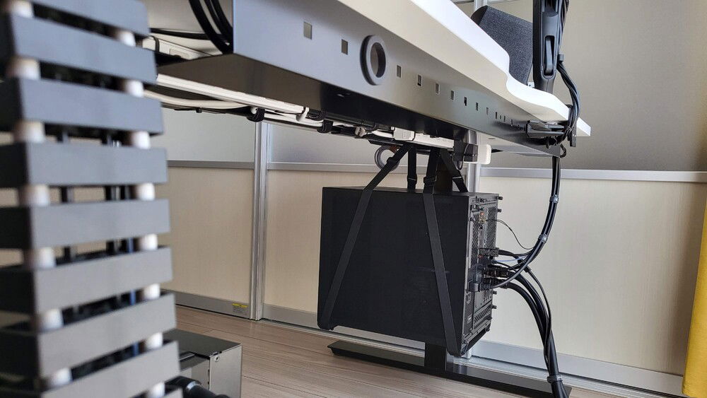 Secondly I have a standing desk in my setup, in order for it to work - I either need extremely long cables if I place PC on the floor, or I need to place PC on the desk, which limits both weight and size of the PC. I don't like the idea of long cables because I already have a monitor arm and it uses about 150cm of cable. With PC standing on the floor I need additional 150 cm of cable to route it through table's cable guide and about 40-50 cm to reach the PC and make a radius. That means 3m cable is about 40-50cm short. But the next step for both USB 3.0 and DP cable is 5m with excessive 150cm of cable to hide somewhere, which is tough. Hence PC should be on the desk or should be