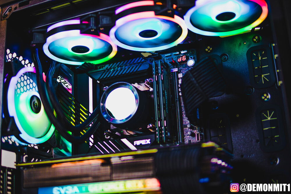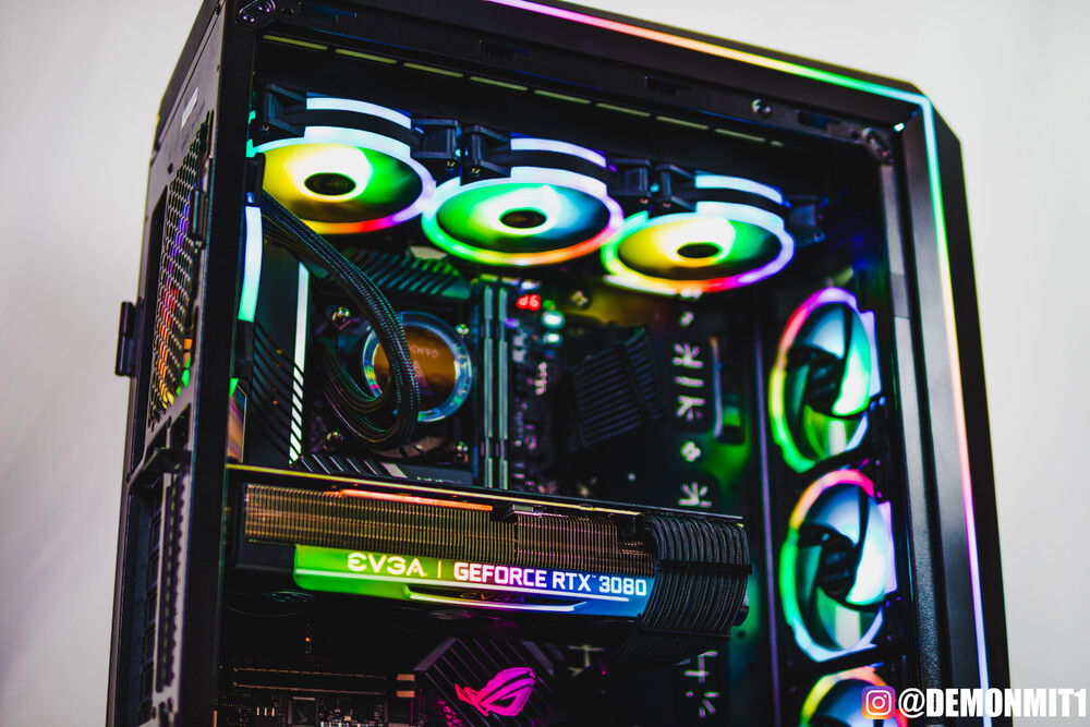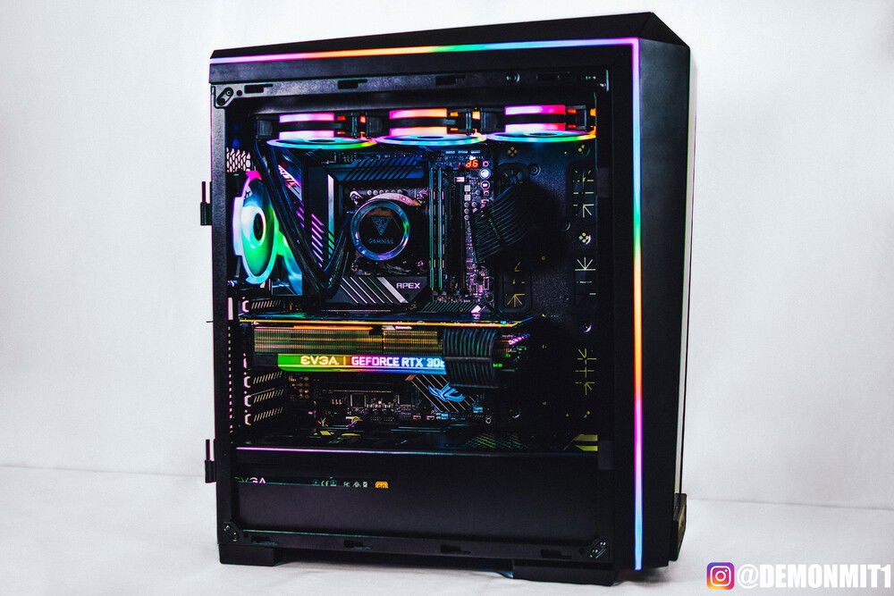 #sponsored build thanks to gamdias today! rocking the insanely fast i9-11900k with a EVGA RTX 3080, built inside the stunning Talos P1A, cooled with the CHIONE P2-360R, this absolute monster of a gaming PC is a stunning lightshow! maximizing out the RGB for the highest FPS possible! lol. tell me what you guys think!