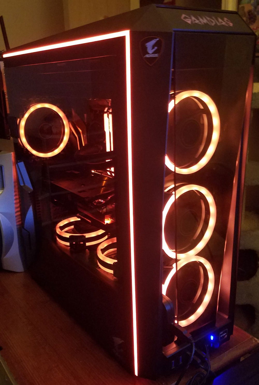 This is my first over the top, high-end PC build i have ever done. My normal builds have always been around 500-800 budget builds. I figured I would make this a Black, Orange, and Silver build. Overall I still went went performance over looks but with almost everything having RGB these days then it made it a little easier to pick what i wanted and then match it later.(Thanks, RGB Fusion 2.0) I have plans to add a full custom loop in the future but for now the AIO is fine so i can save for a little while. For the loop i am going with either nickel or black nickel fitting, nickel base-clear top block with RGB for CPU and GPU, orange fluid, 360PE radiator, and RGB pump/res combo. Haven't decide on whether i should put the GPU in the vertical mount on the case once i get the custom loop or not because it would cover the bottom half of the board but would show off the nice water block and RGB on the GPU