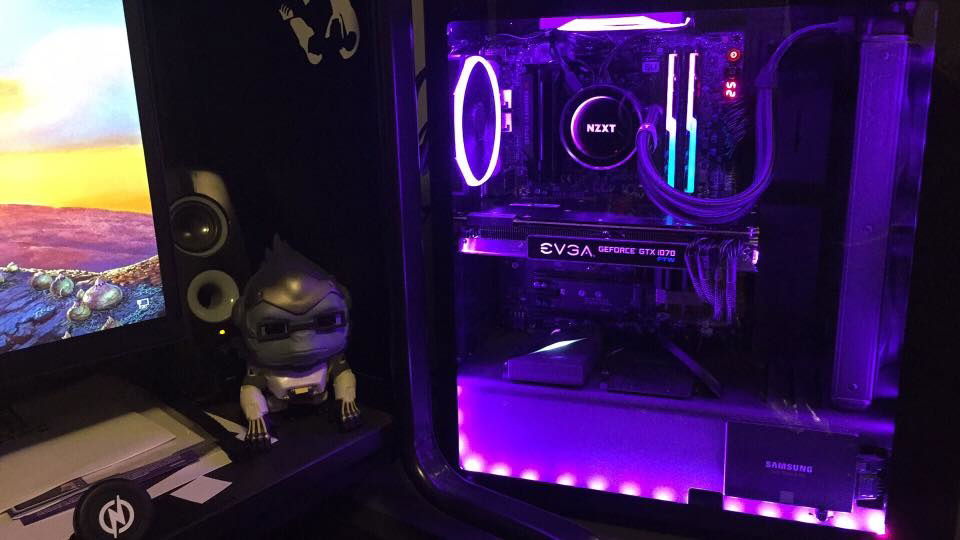 Purple Reign started life as a 6700k, in the EVGA Z170 Classified K. Sporting 16GB of Trident Z RAM, an EVGA GTX 1070 FTW and 500GB of Samsung 850 Evo storage. Powered by an EVGA SuperNova 650 G2, and cooled by a Cryorig H7 air cooler, all bundled in the NZXT S340 Elite. With the additions of Trident Z RGB RAM, a NZXT Kraken X62 & NZXT Hue+ w/ AER RGB fans, Purple Reign is complete.