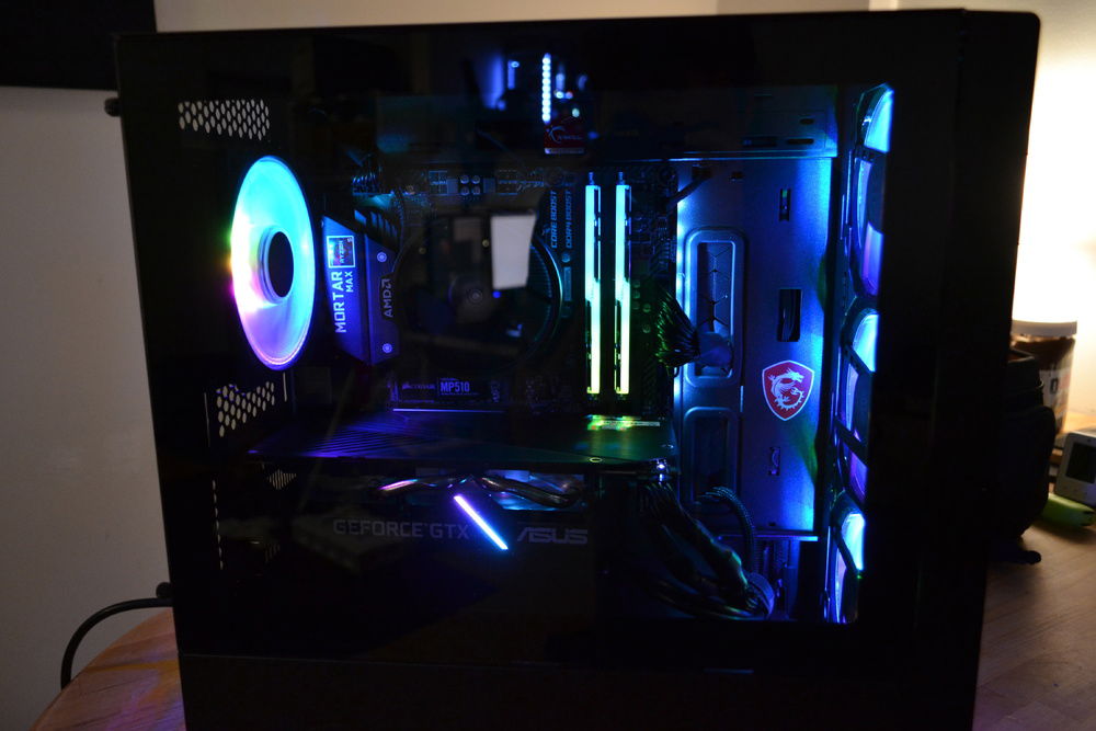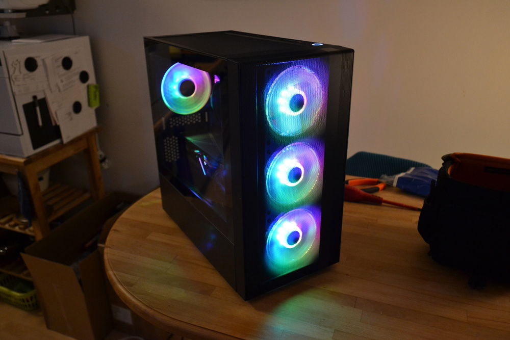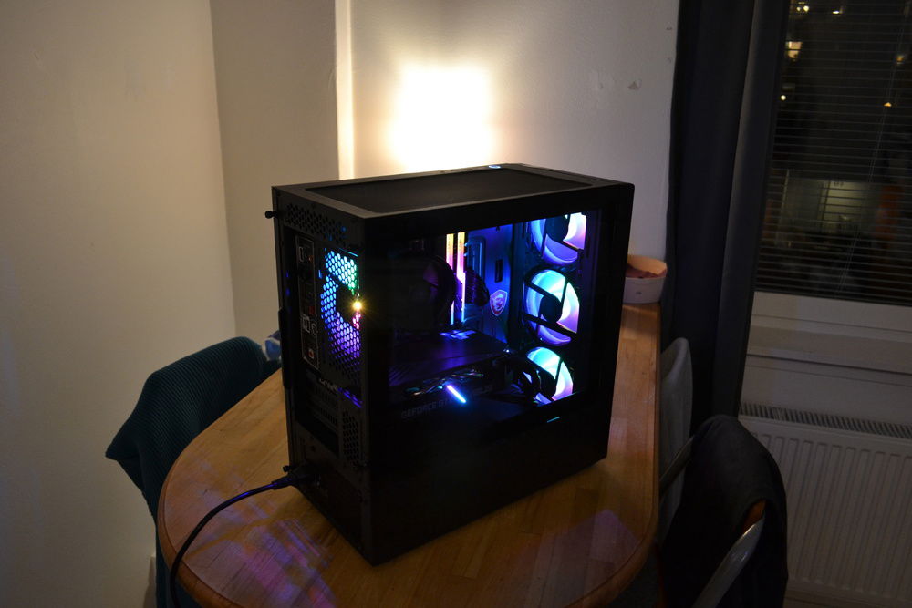 Building in the NR400 was amazing, its a really great case for its price. Super good airflow with even the included two fans. I replaced these with the 120mmx3 and 120mm fan for its suitable rgb-ness. I have to say that they are pretty quiet and the triplefan is actually a good product. The front mesh creates this really good looking reflection with the LEDs.