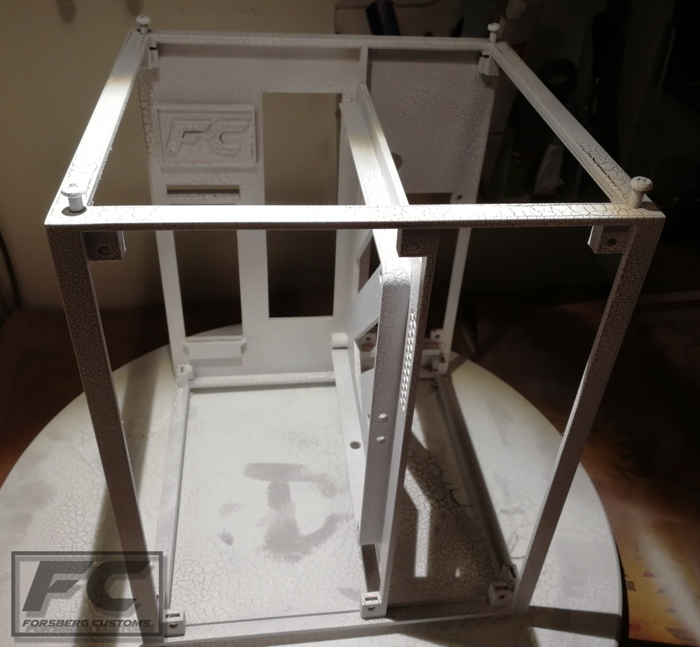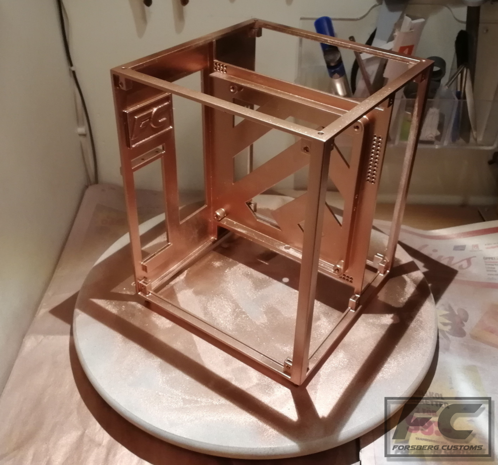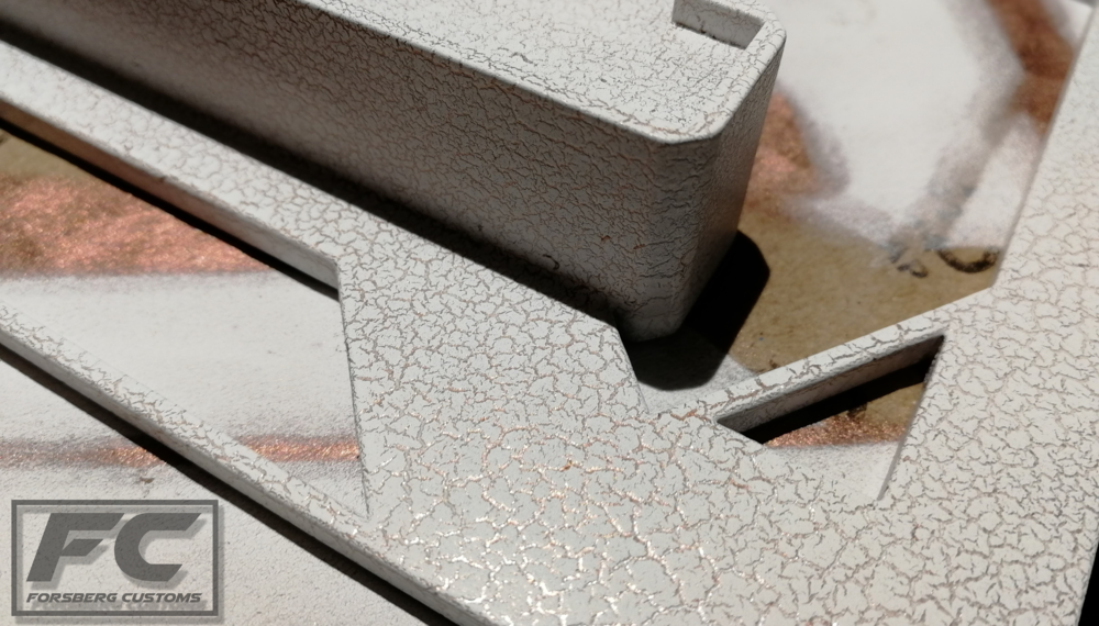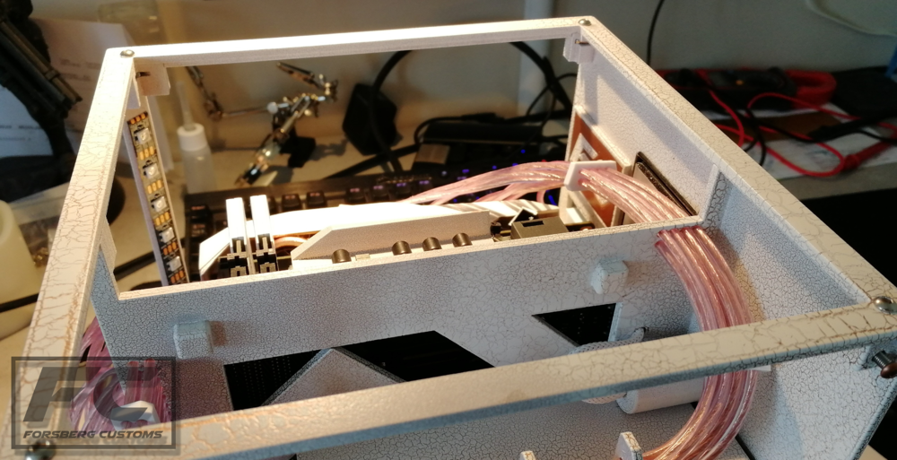 Since the last update a couple of things has happend. All of the parts have been painted and in the end i went with a copper base with a white crackle paint on top and it looks really good :). The LEDs and power button has now been mounted aswell.
