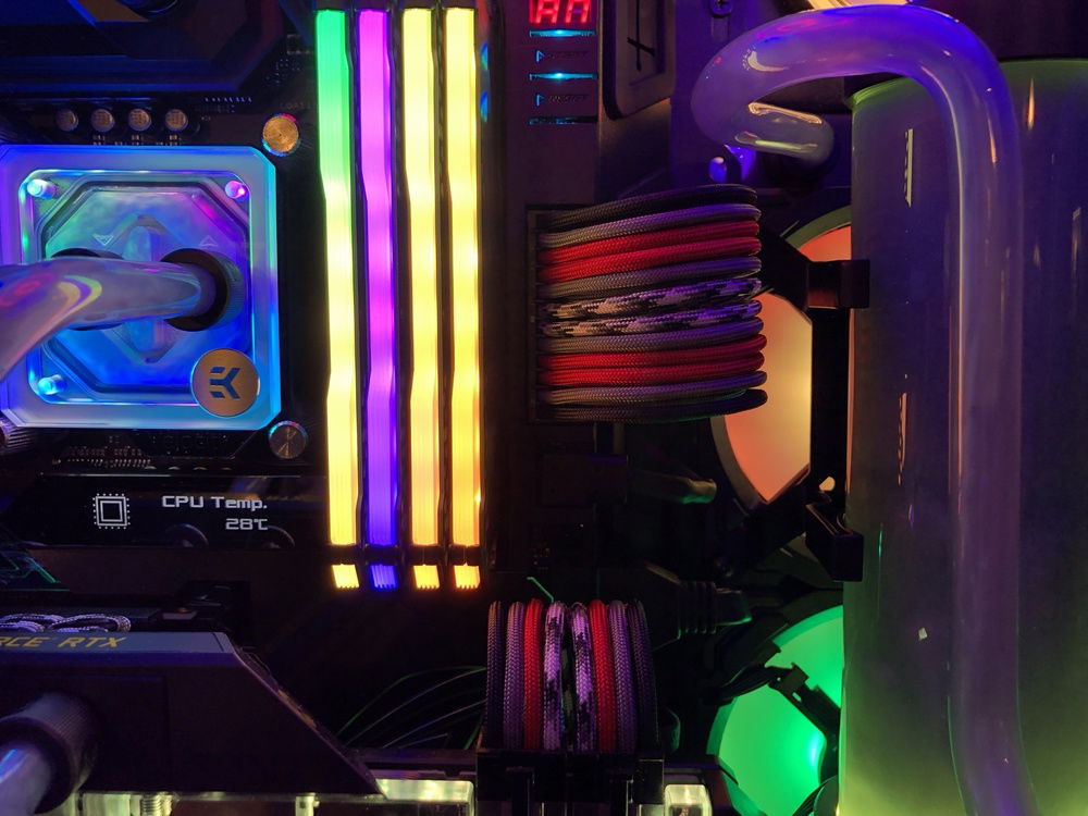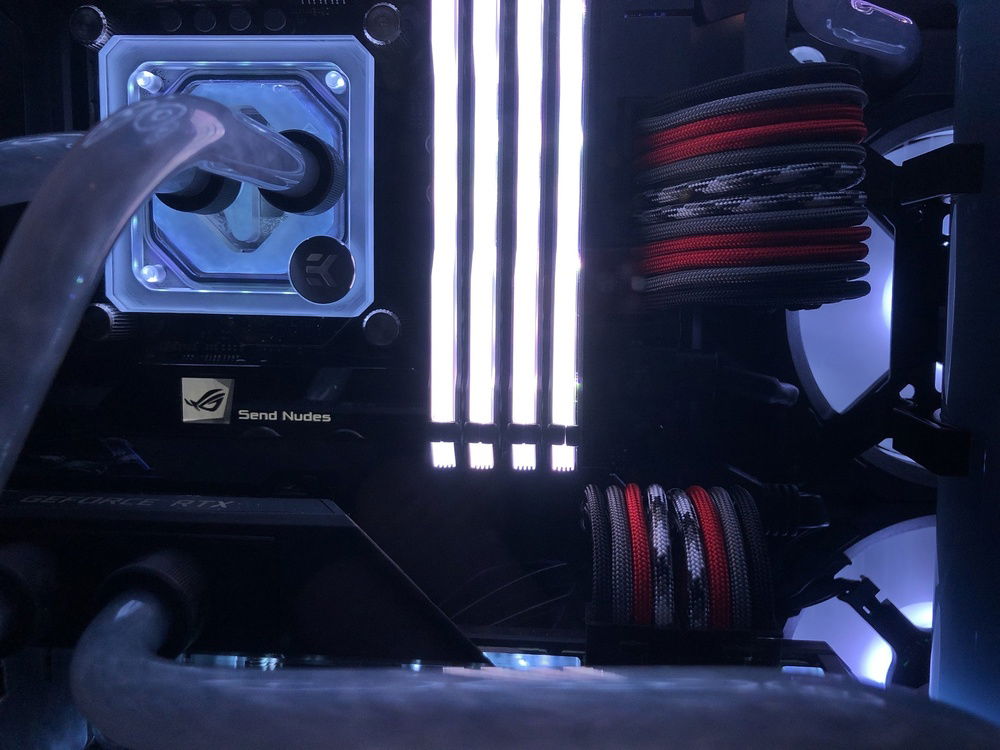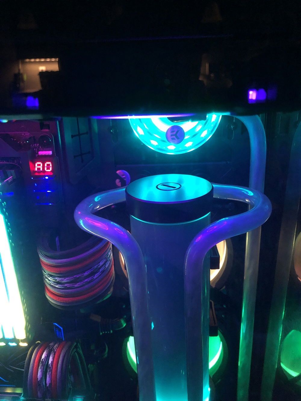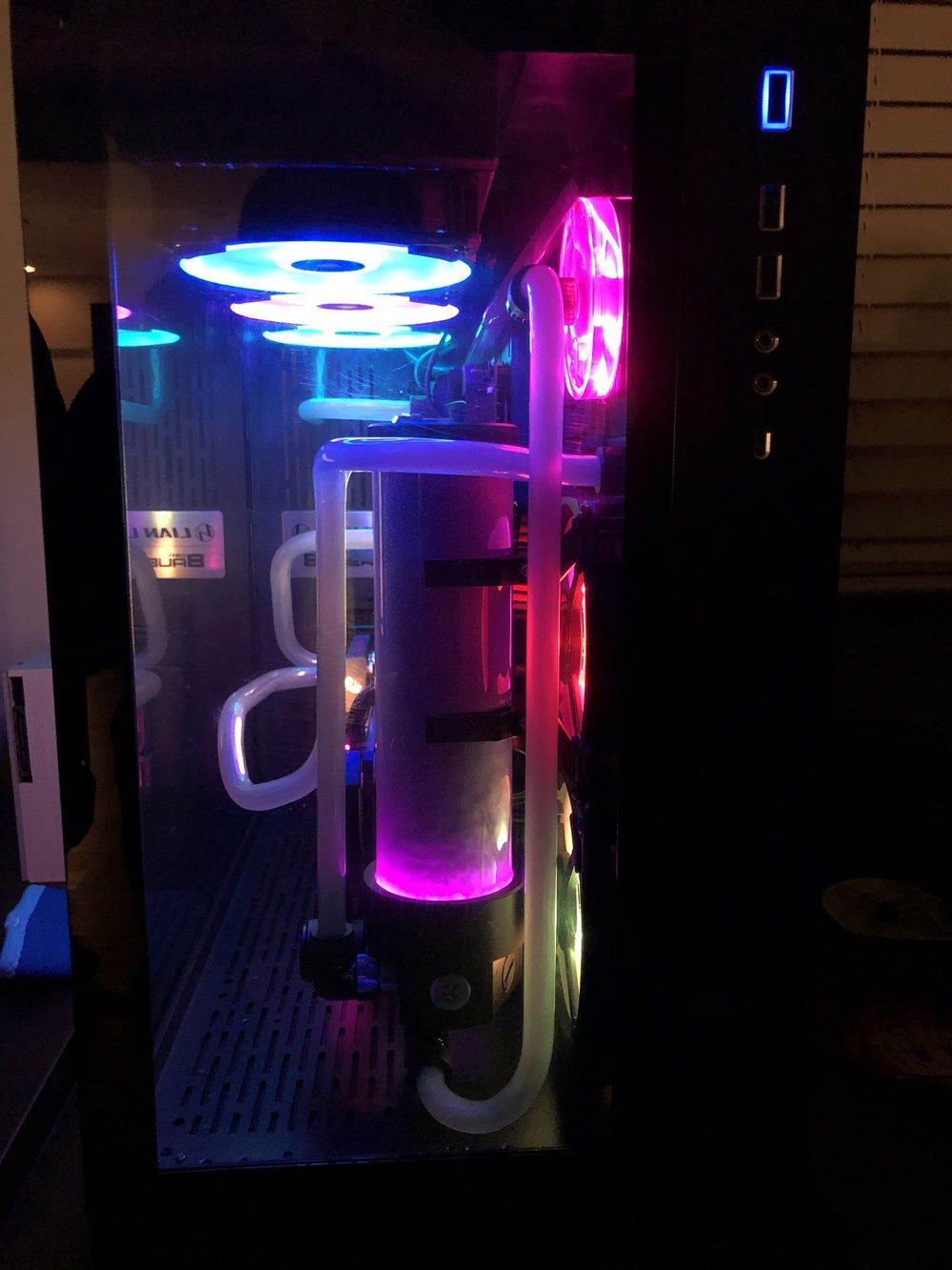 First attempt at a fully custom water cooling build. Decided I wanted to go all out with custom acrylic tubing and individually sleeved cables. I did not have a proper name for the build until it was already completed, the idea came from a friend and it sort of stuck given the crazy bit of rgb...