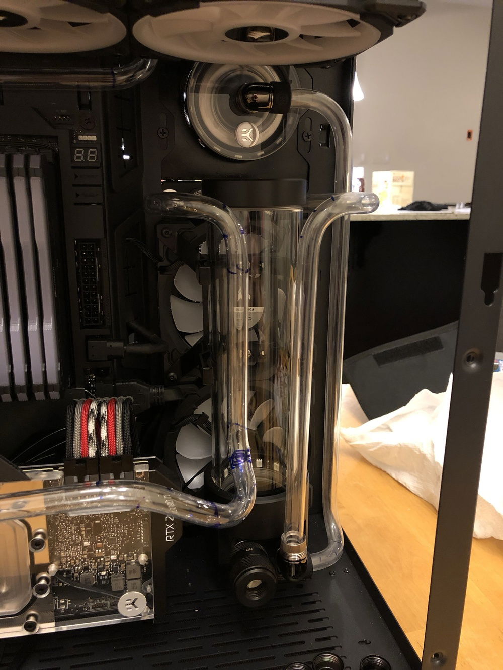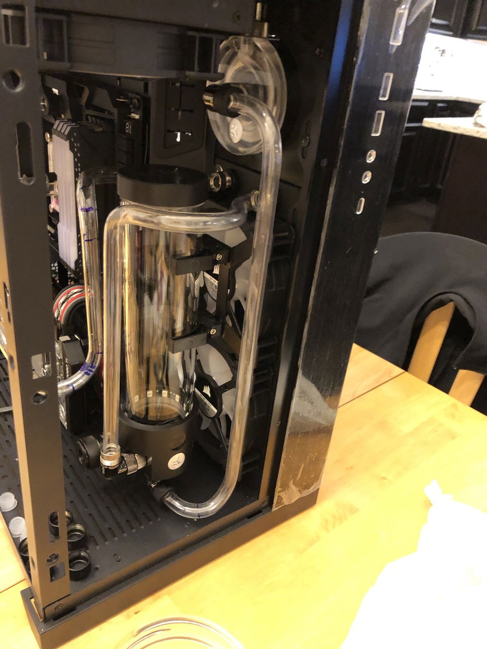 About the buildThe pump is held in place by a custom 3D printed mount. I am not a fan of how the pump/res combos look, which is why i decided to go with this setup. However mounting the pump above my reservoir means that initially filling the system requires it to be on its side. Lets just say it takes awhile to create an initial suction, but once that happens you can turn it upright and just fill the res as the system fills.