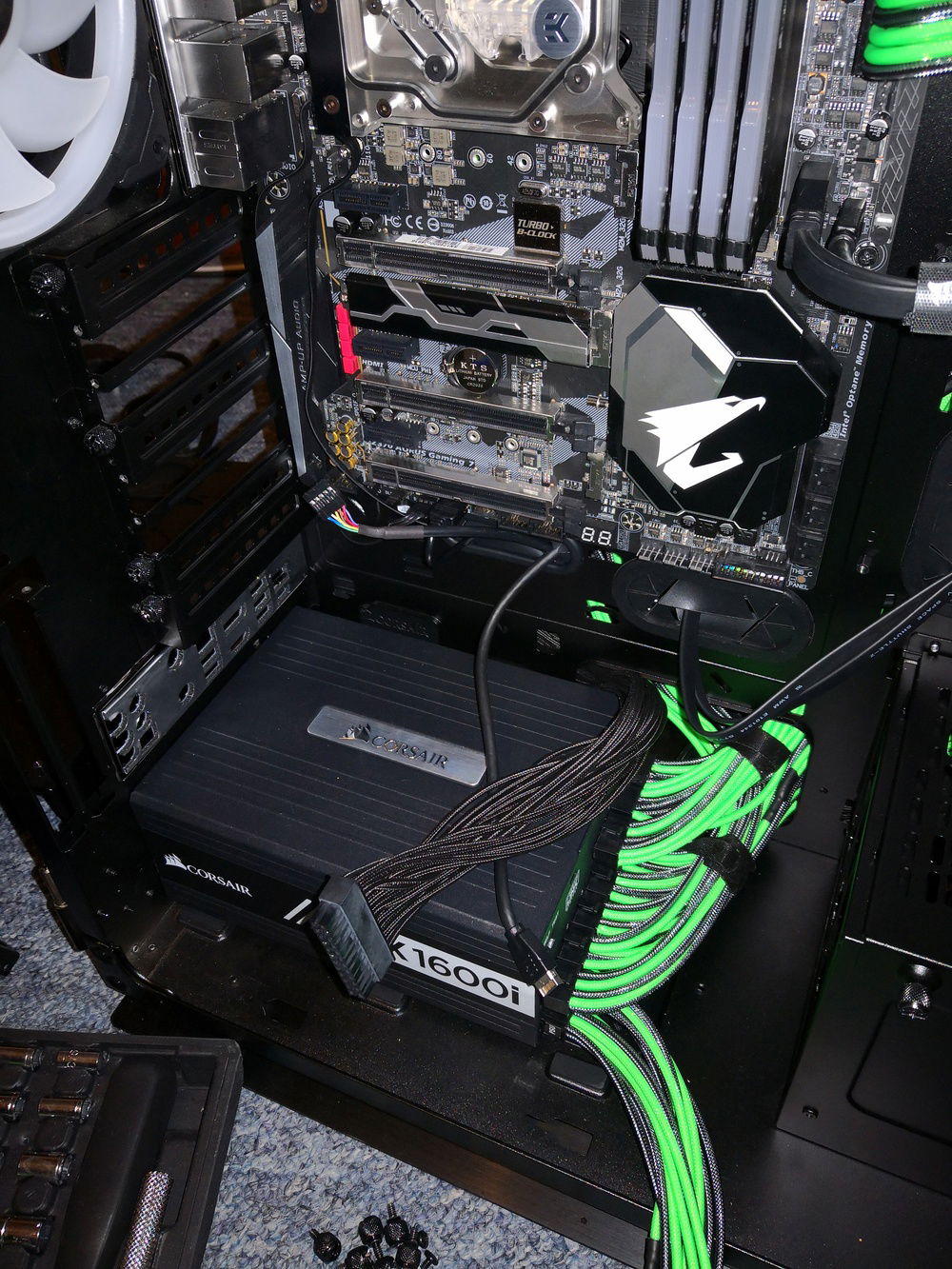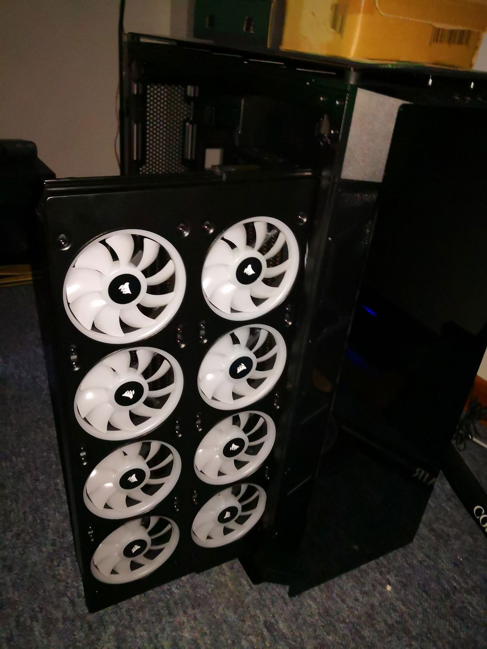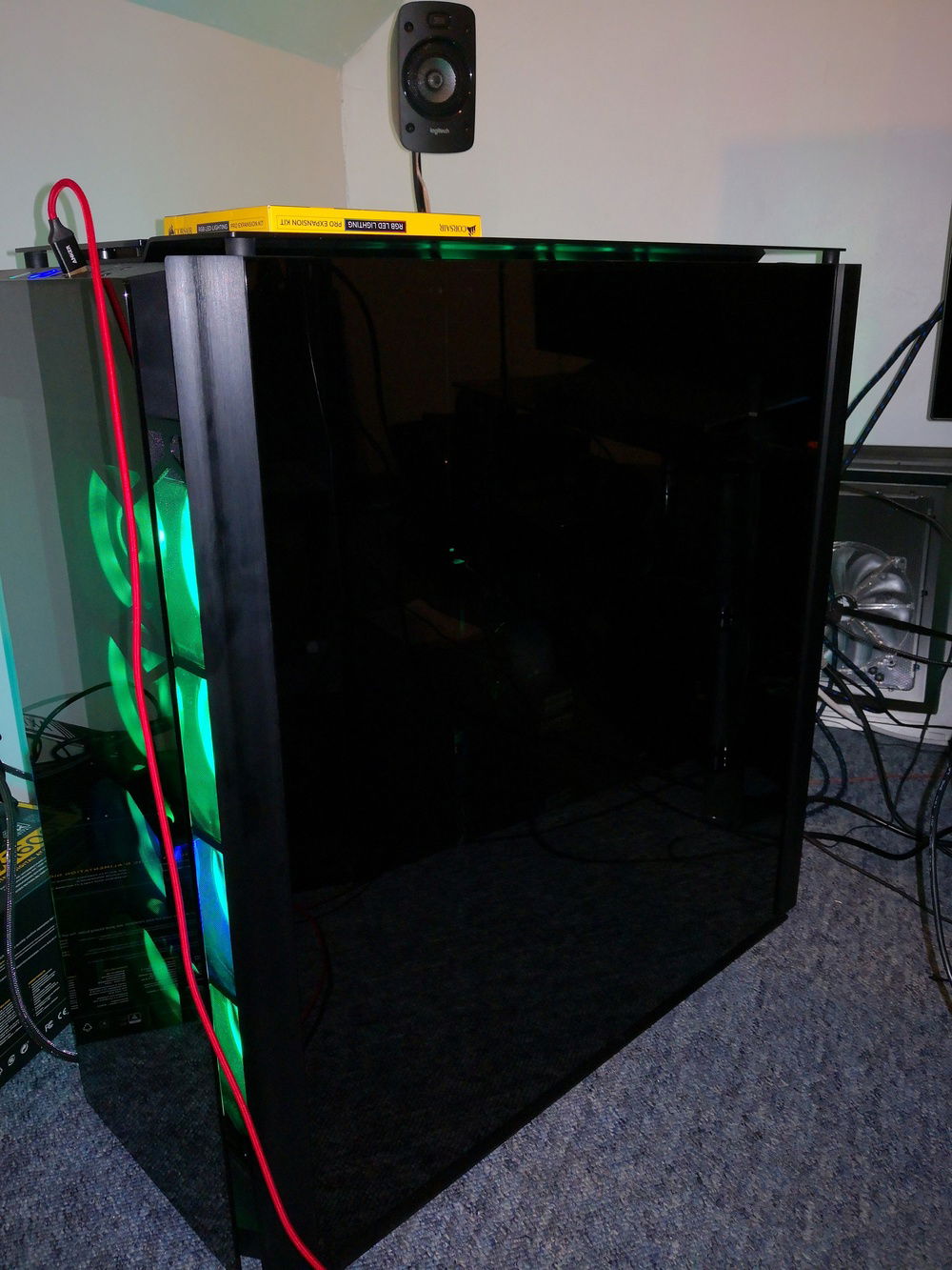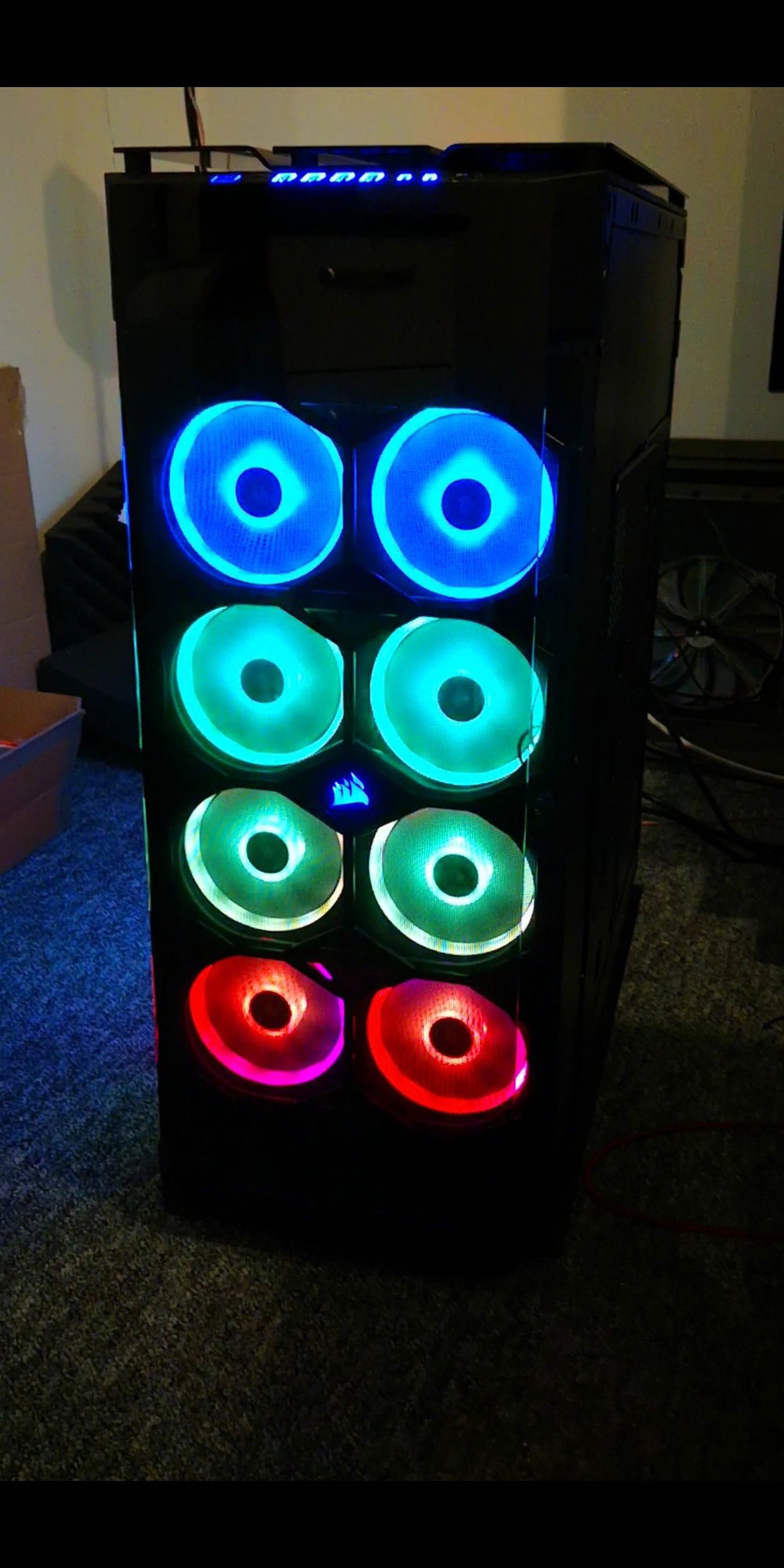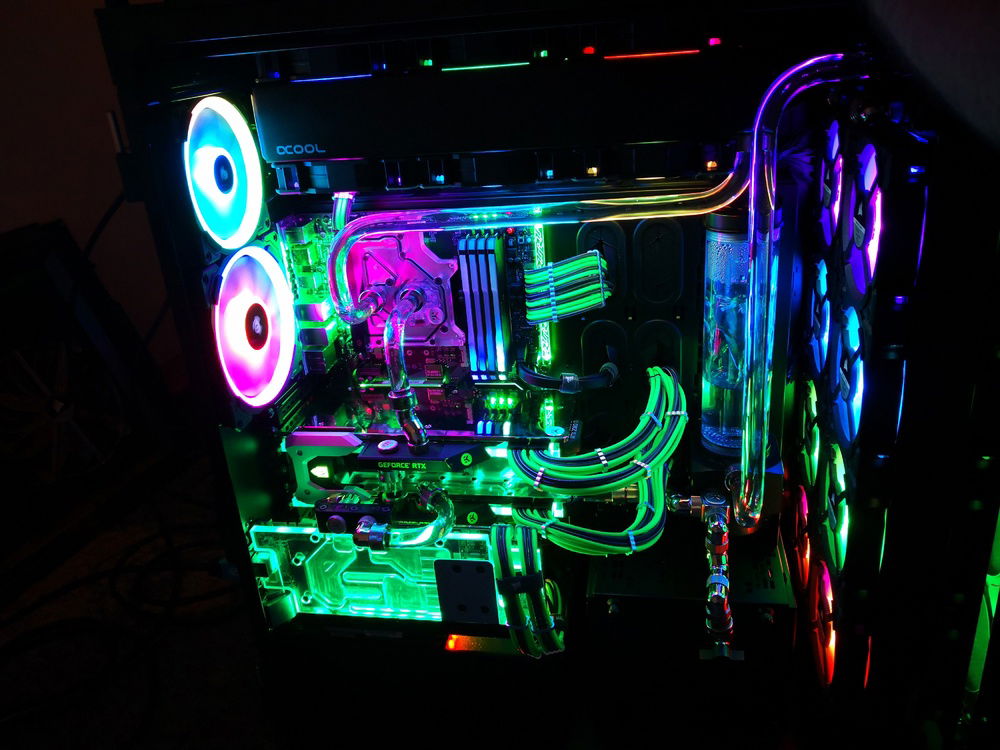 After months of hardware stocking, weeks of preparation and weeks of building... It's done. Build complete. Corsairs Obsidian 1000d case 2 PCs in 1; 24 LL series RGB fans; alphacool radiators and reservoir/pump; EKWB waterblocks and fittings and much more.