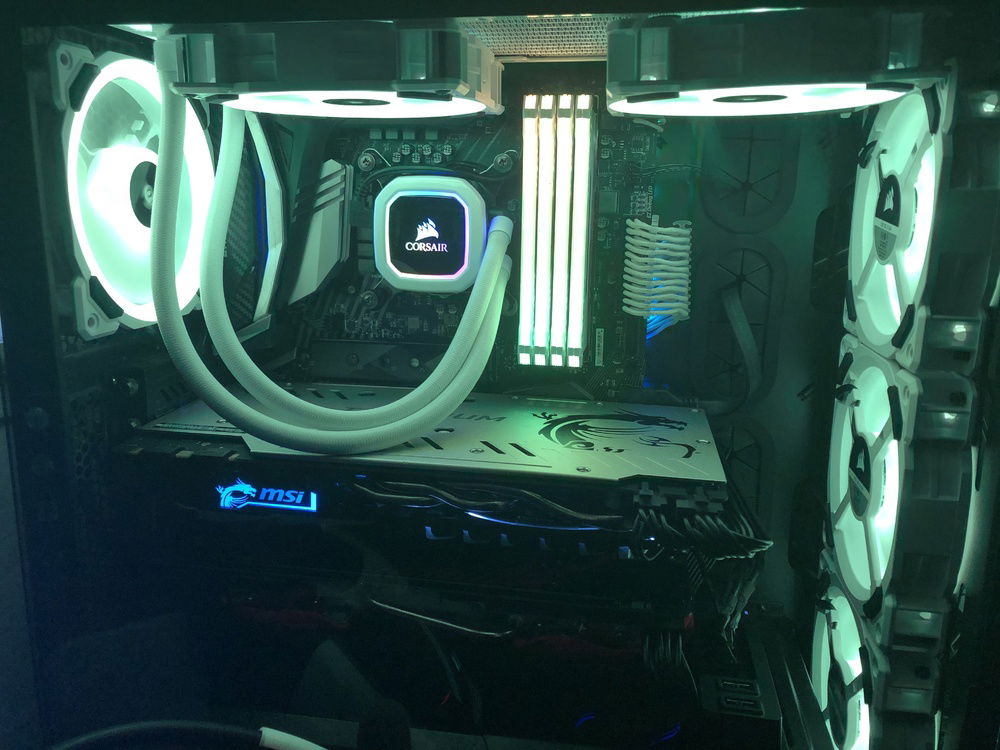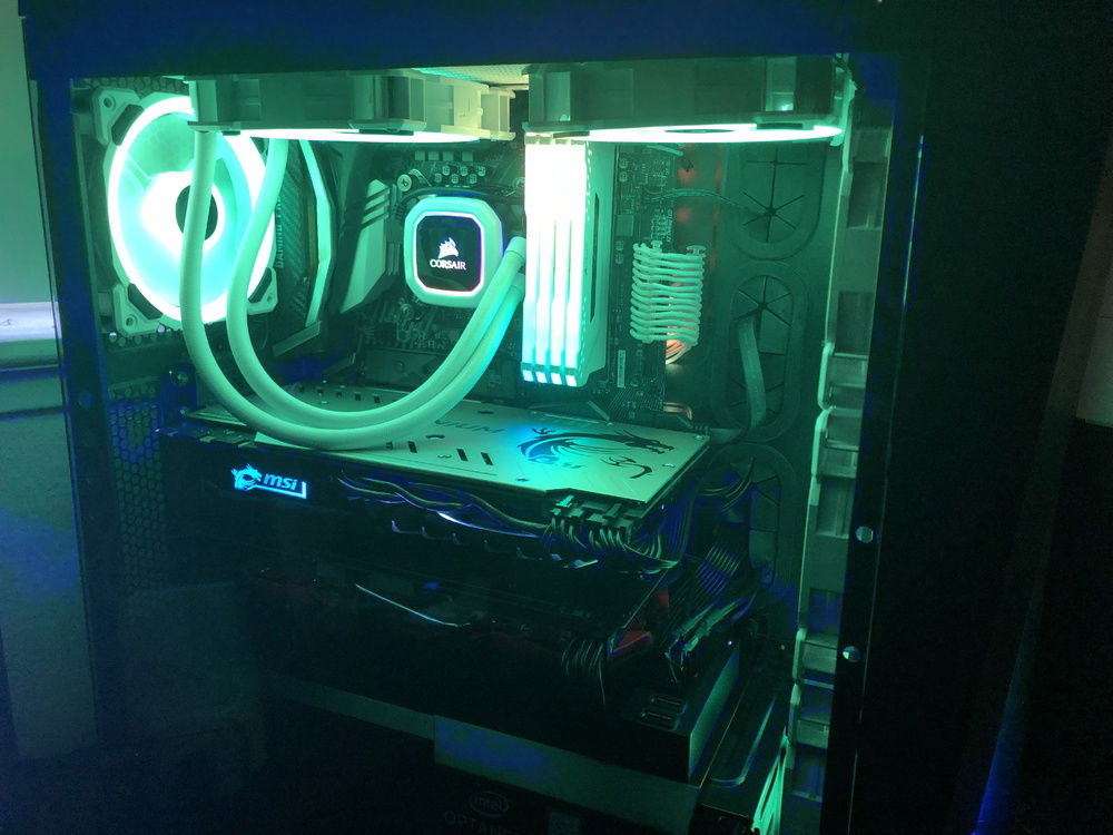 CPU - Intel Core i7-8700K Cooler - Thermaltake Floe Riing 240 TT Premium EditionUpgraded to Corsair H100i RGB PLATINUM SE RAM - Corsair Vengeance RGB Pro 64GB (4x16GB) 3200MHz (PC4-25600) Motherboard - MSI Z370 Gaming Pro CarbonUpgraded to MSI MEG Z390 ACE GPU - MSI GeForce GTX 1070Ti Titanium 8G + MSI Radeon RX580 Armor MK 2 8G PSU - Corsair HX1200i 1200W 80+ Platinum Storage OS - 500GB 2.5" SSD+500GB 2.5" HDD Recovery+Intel Optane 32GB Memory Module Volume Storage - 1TB WD Blue 2.5" HDD + 1TB WD Black 3.5" HDD + 240GB 2.5" SSD Backup OS Disk Case - Corsair Spec-Omega RGB Upgraded to Corsair Crystal 680X RGB