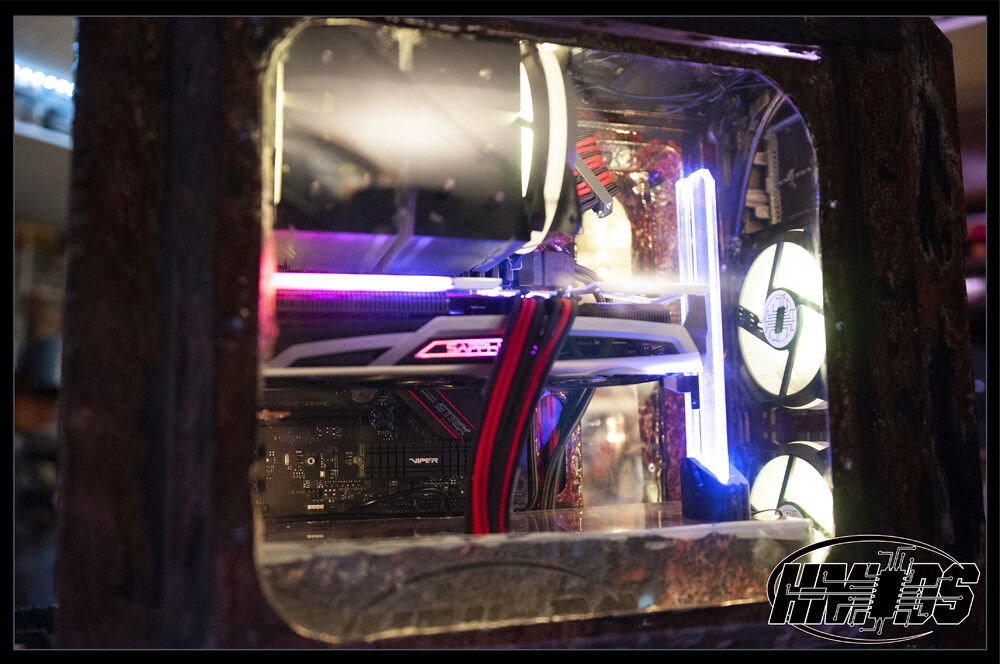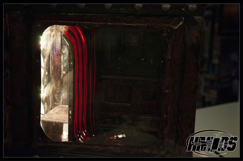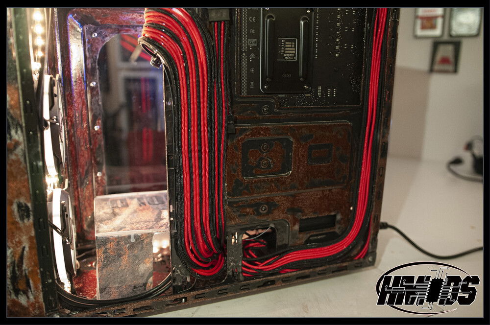 The front panel was hand painted to give the look of rust like the rest of the case, with a custom cut screen, but instead of pouring resin on it, i simply sprayed it with three coats of laquer to give it a different shine, adding a dynamic!