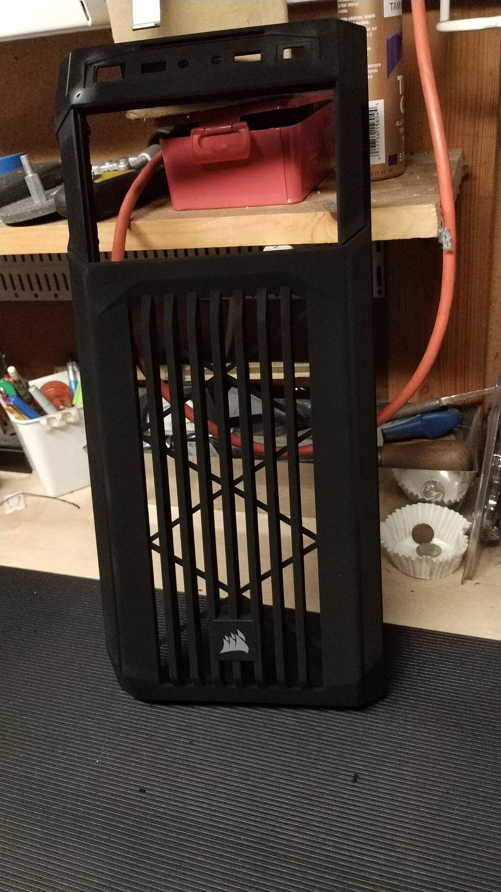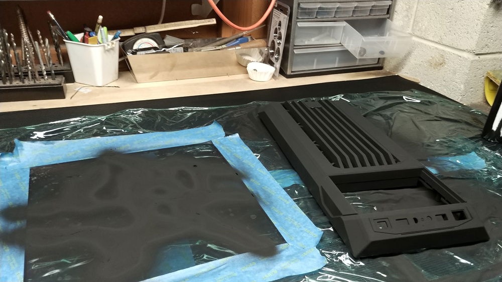 This project was a LOT of fun. Thanks to an artist/chemist named Stuart Semple, the case, a Corsair Carbide Spec-01, will be painted a black that is so insanely black that it absorbs 99% of the light shown on it.
