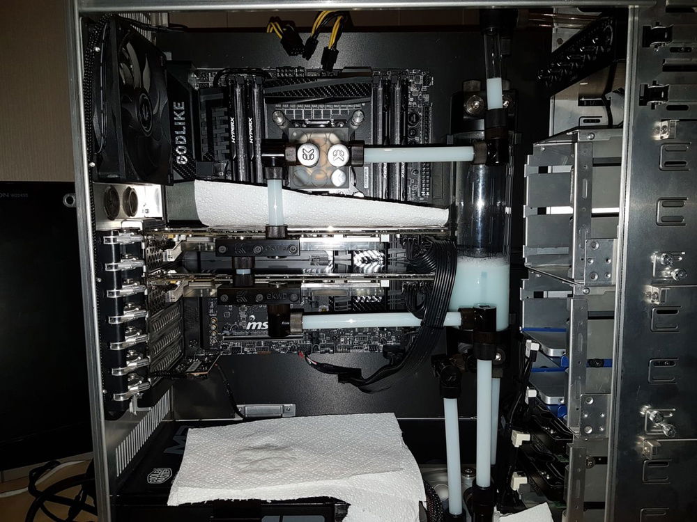 So this was my first watercooled pc. This build has evolved over time with parts coming and leaving the build. It all started with just a CPU loop but ended up being full custom.