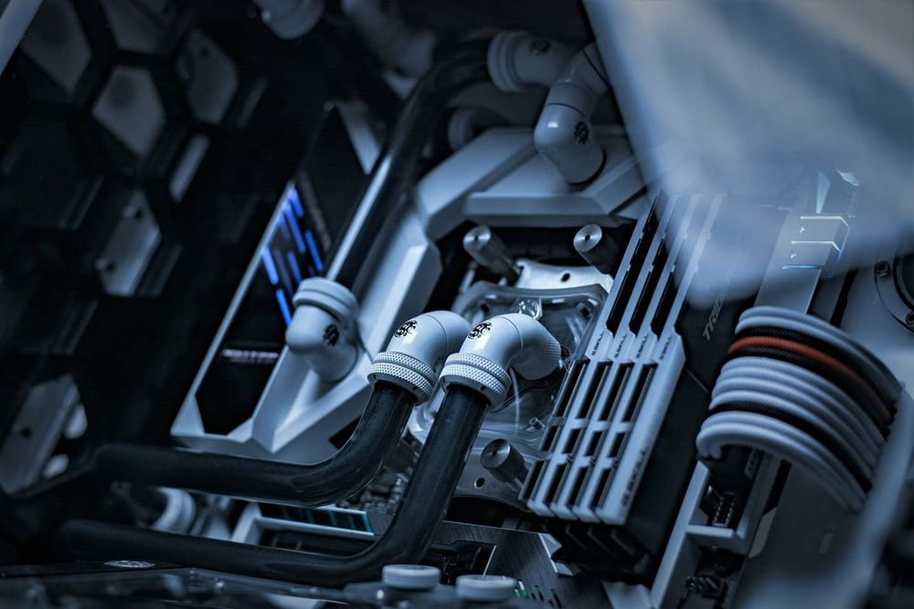 @bitspower Summit M CPU waterblock, Lotan GPU waterblock and all white fittings including 16mm compression utilizing @bitspower 16mm crystal link acrylic tubing