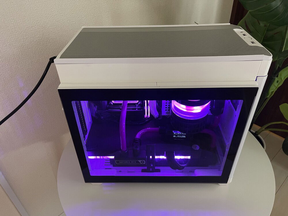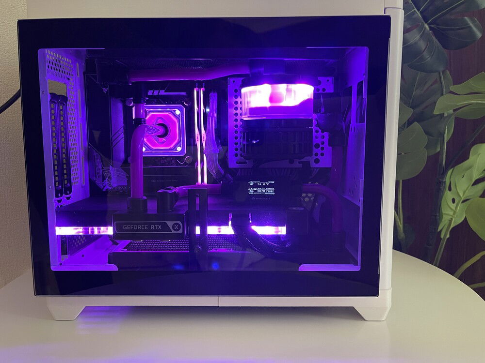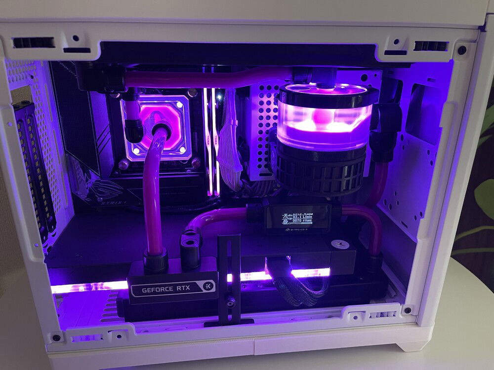 For this build, I aimed to see how well the NR200P could be modded to accommodate a full, custom liquid CPU/GPU loop. A lot of 3D printing went into the build, as well as some custom cables. The theme for the build was "Cyberpunk." Two, 240mm thin radiators from EKWB were installed on the top and bottom of the system, each with two, 120mm thin, black Noctua fans. Overall, I was fairly happy with how everything came together. The only real drawback to having an SFF crammed full of components was a fairly rudimentary setup for filling/ draining the loop (modded rad with threaded insert). The temperatures were incredibly good, even with a moderate overclock on the 4090, and I never saw the fluid exceed around 65C. The 13900K was not delidded, and did throttle at max load, but it still seemed to achieve what most other custom loop builds did in terms of performance, at least based on the handful of posts I found online.