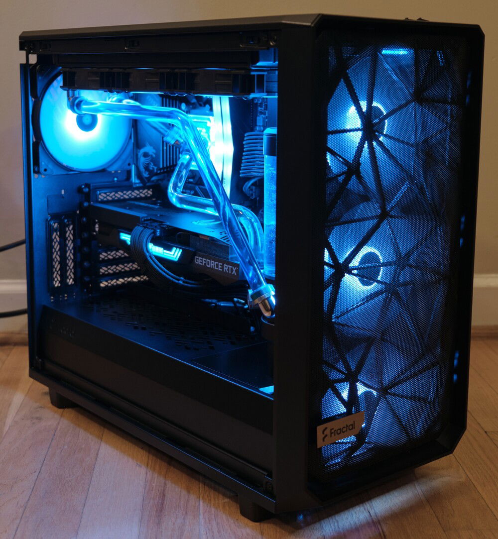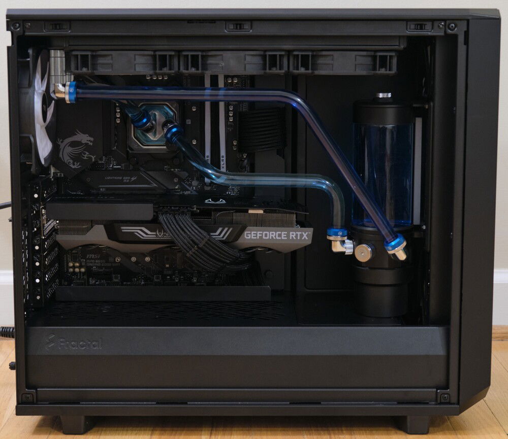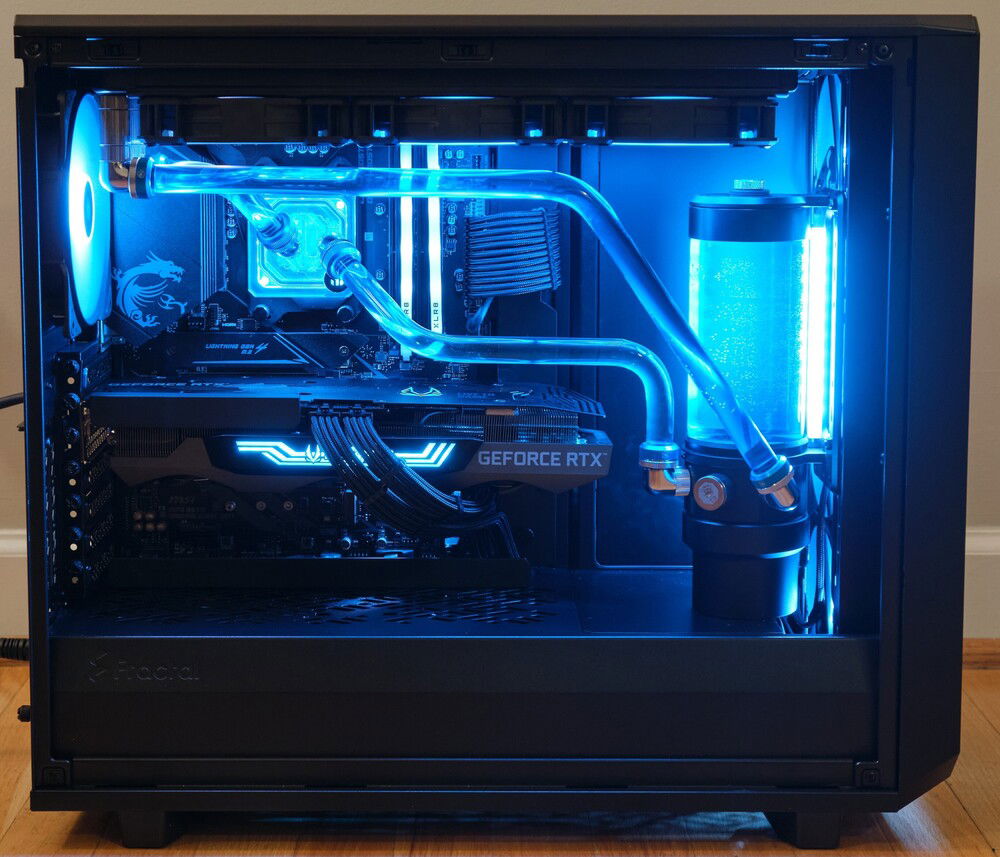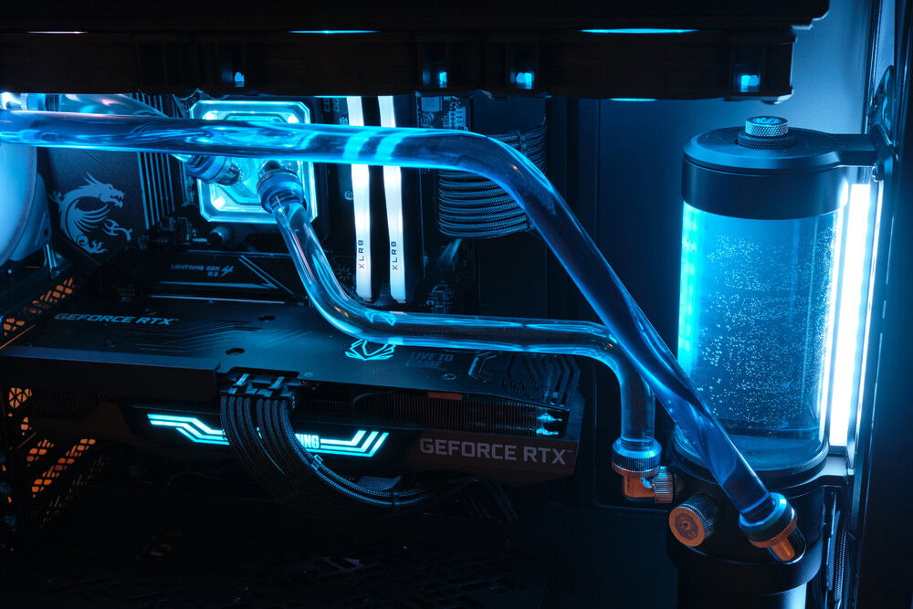 A single blue tube was used to create something of a reverse shadow. The further away from the components the tubes/coolant were, the darker they were.