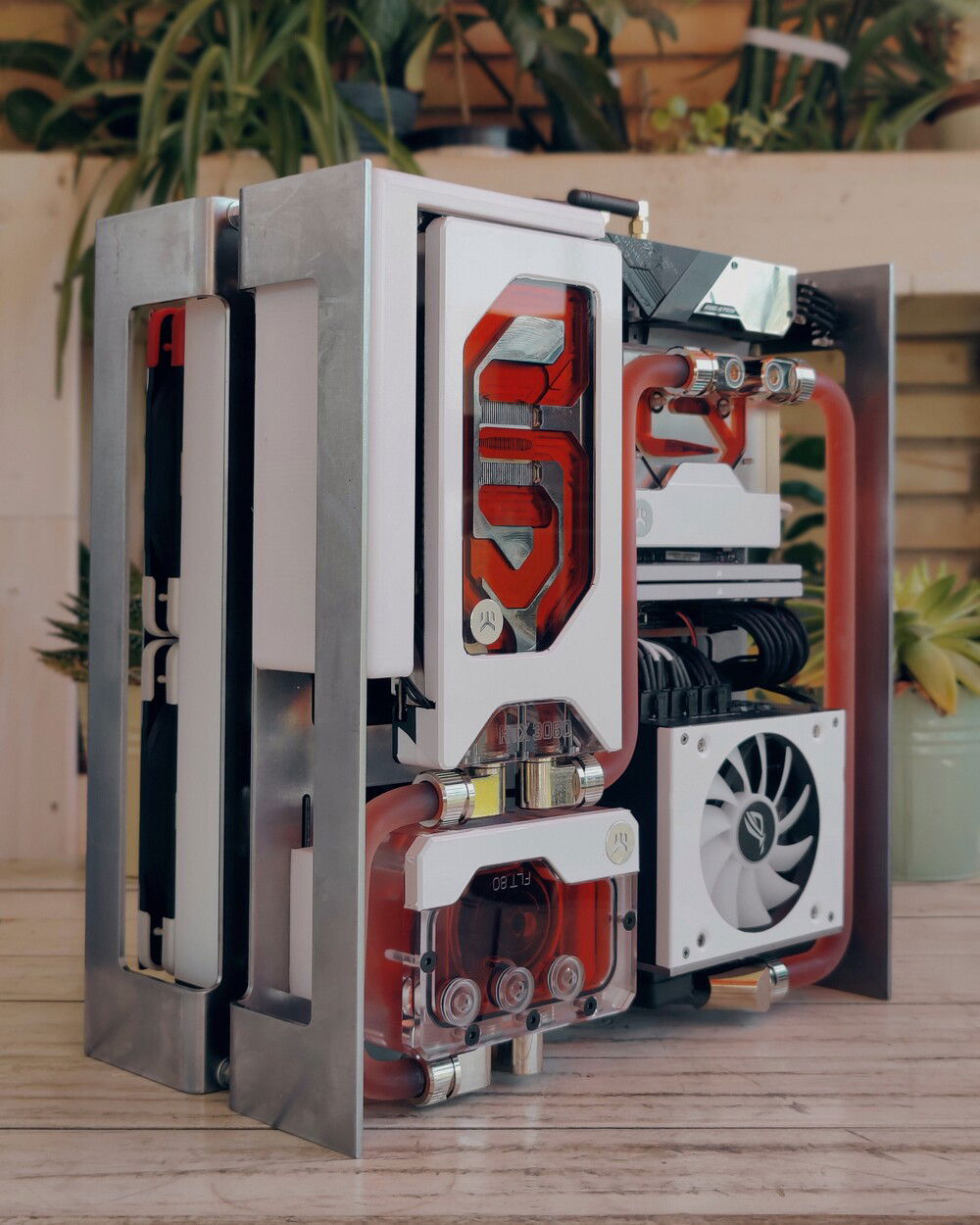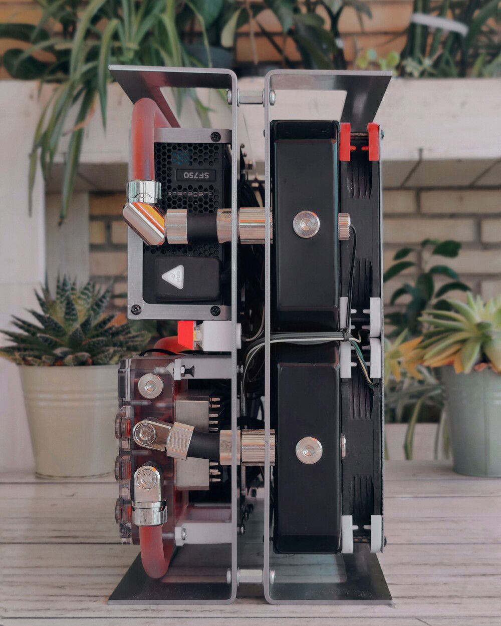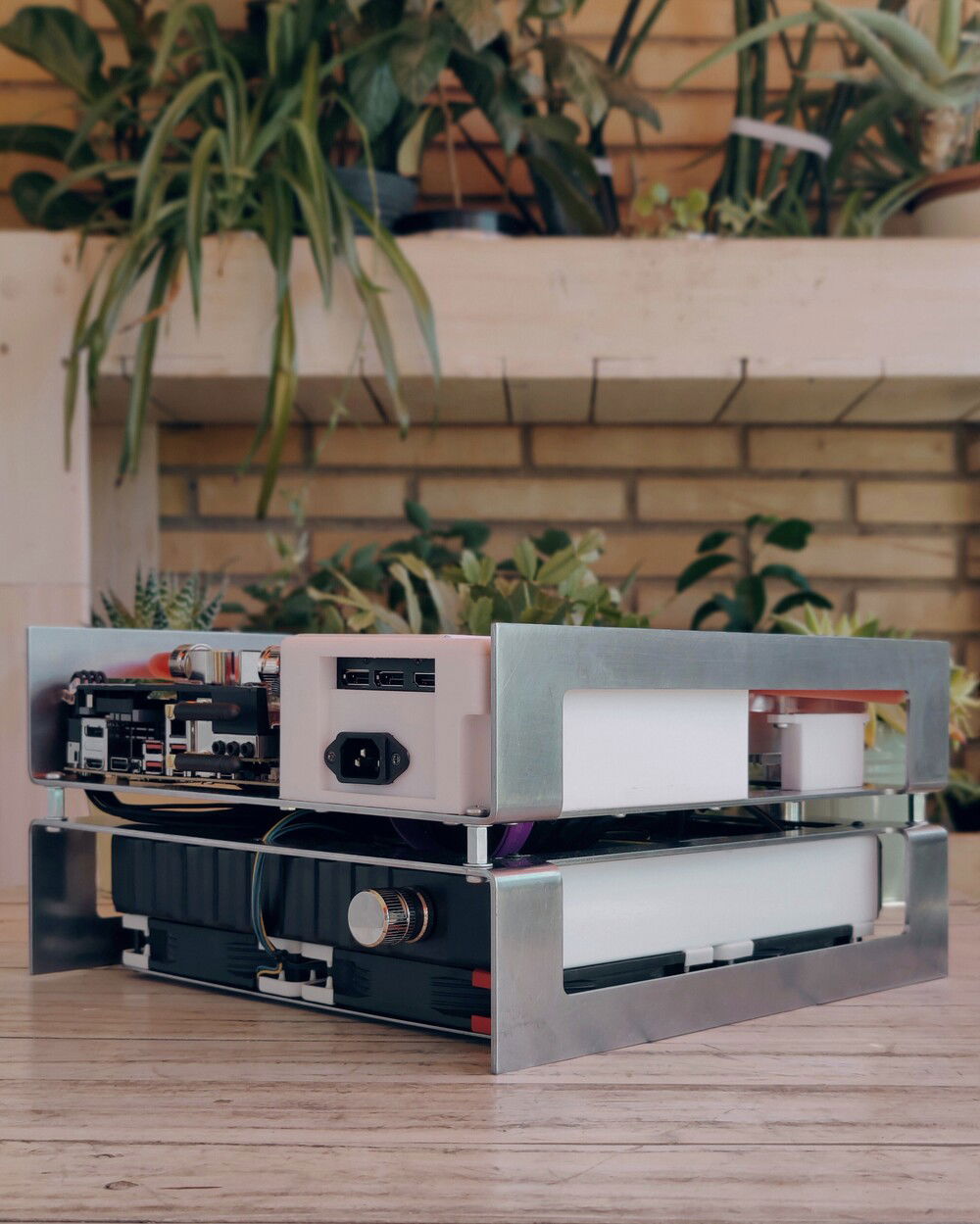 I have taken the previous PC as a reference and I have gone from making the box with methacrylate to stainless steel, making it harder and more compact.