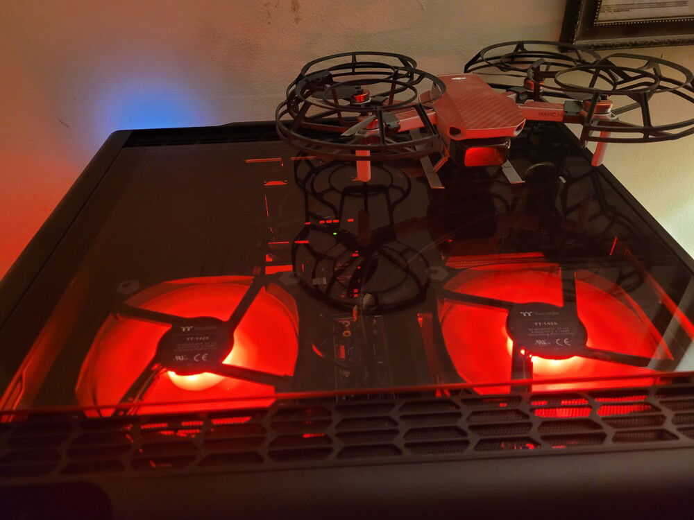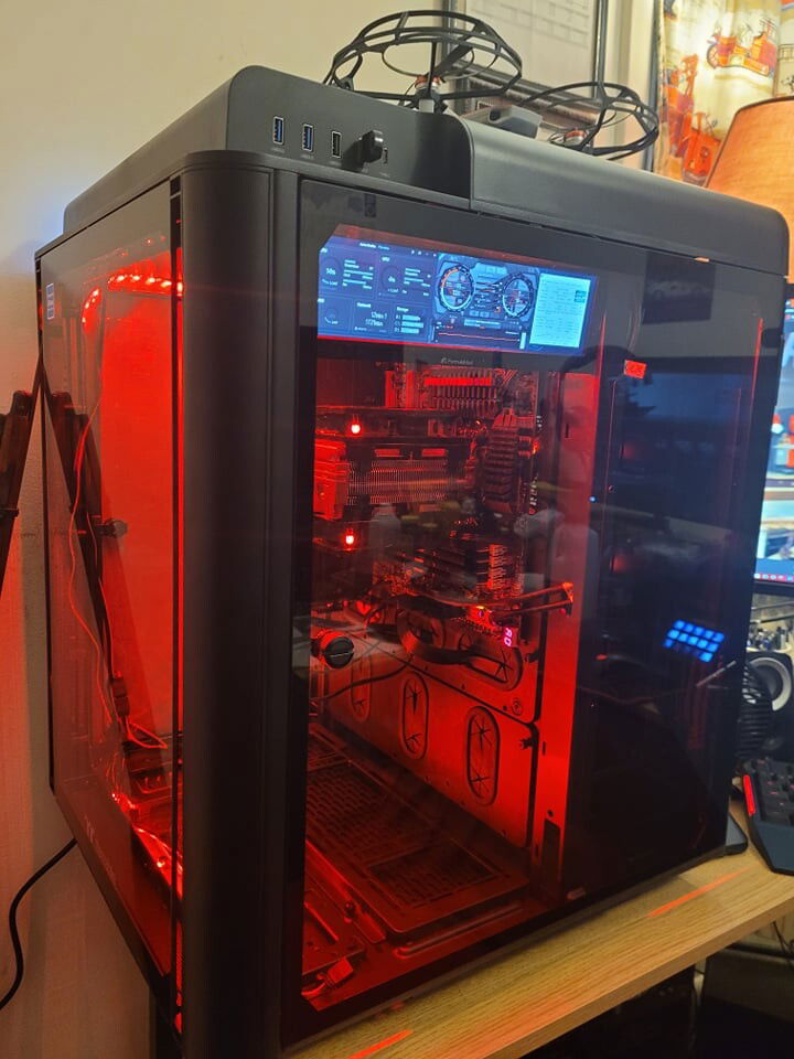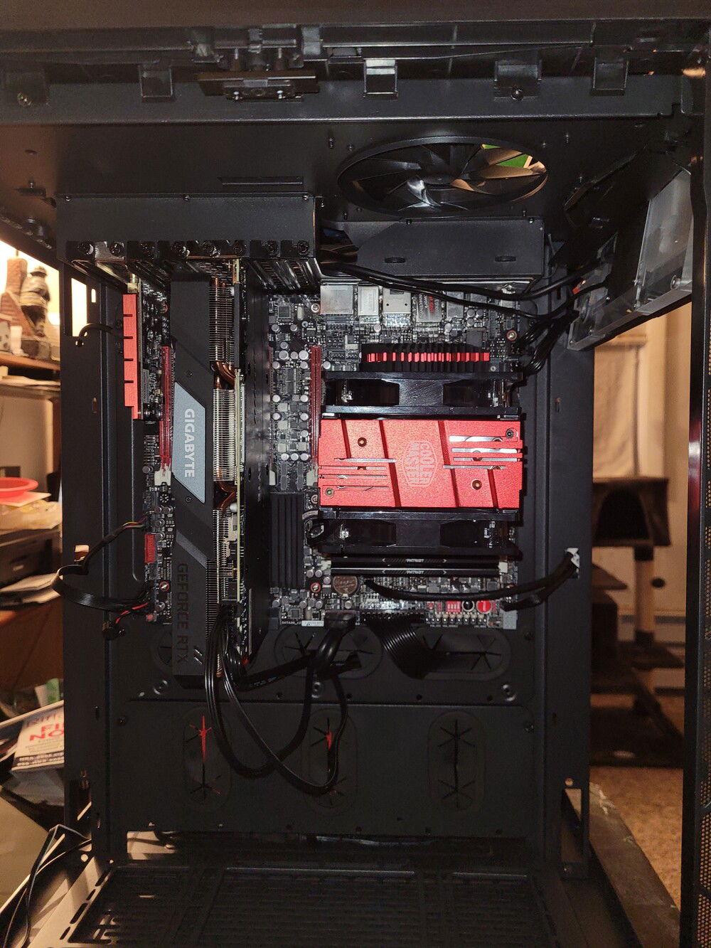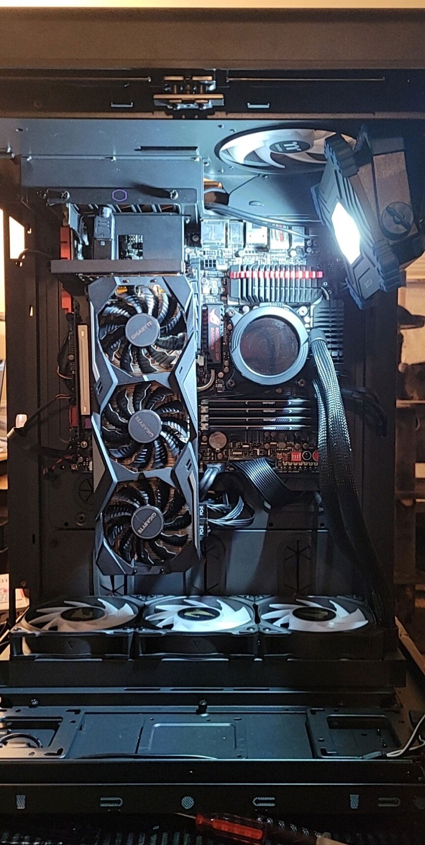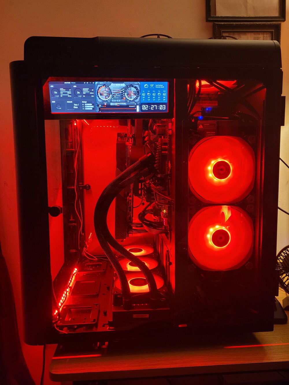 As the Amazon Boxes piled up, it was time to upgrade Big Red! I added 6 ThermalTake Pure 14 ARGB 140mm fans on the top, side and back. I wanted a vertical GPU riser so i can actually show off my GPU better of course! Had to modify it by cutting and bending away the 7th slot as i have a WIFI card and it would have been in the way. Last upgrade was cooling. An Aorus Waterforce 360. As many people have said the water tubes are JUST about an inch or two too short for what i wanted BUT made due with what i had. So far so good! In the future i do plan on custom water cooling, but not anytime soon. For now, it is good enough for what i use it for!