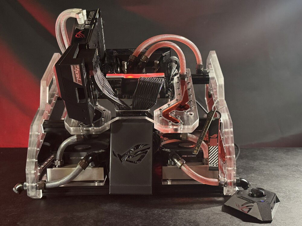 Made a mini itx bench years ago. Never was build in. Was able to get it back and threw on some ROG love. Enjoy