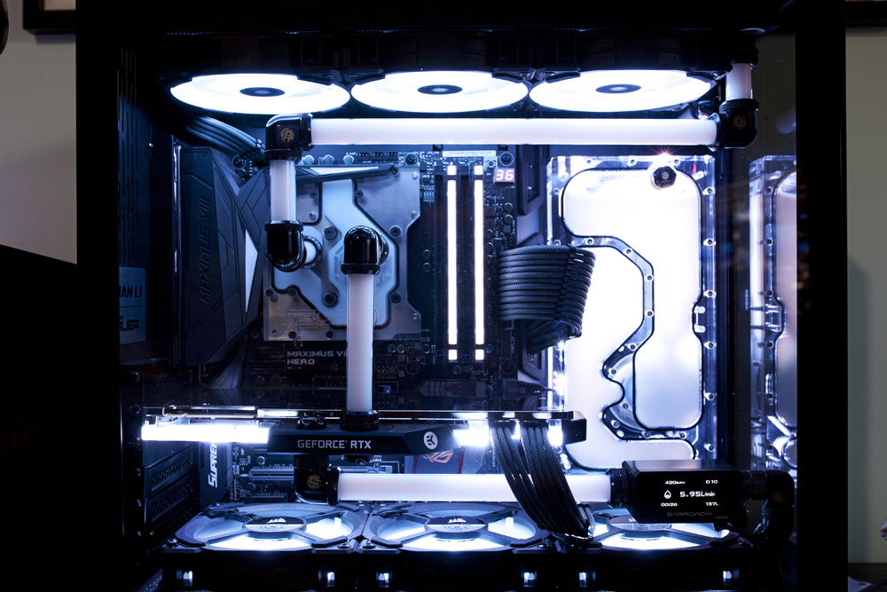 Glass meets steel. Inspired by the Lian-Li PC-O11 Dynamic case, a custom loop using glass tubing to go along with the temper glass panels.