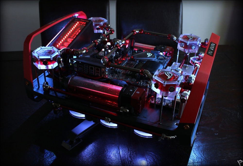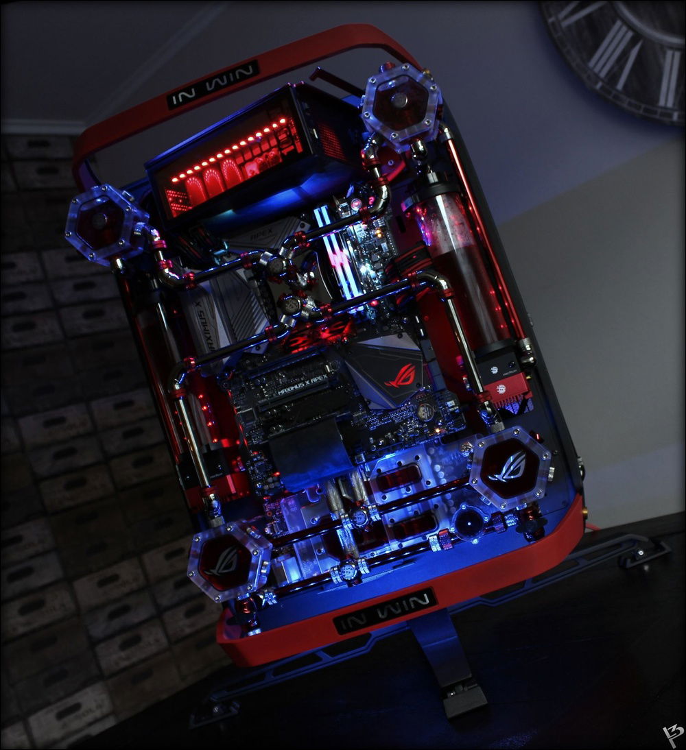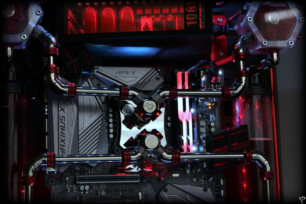 A build I did for Asus to showcase their Maximus X Apex in an Inwin X-Frame 2.0 with a loop in the shape of an X