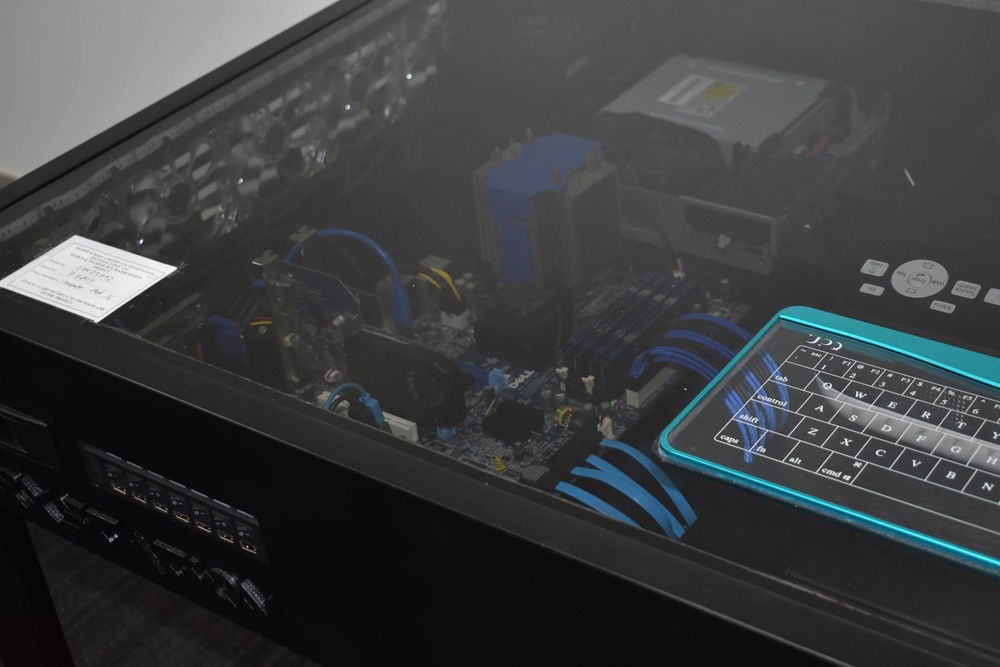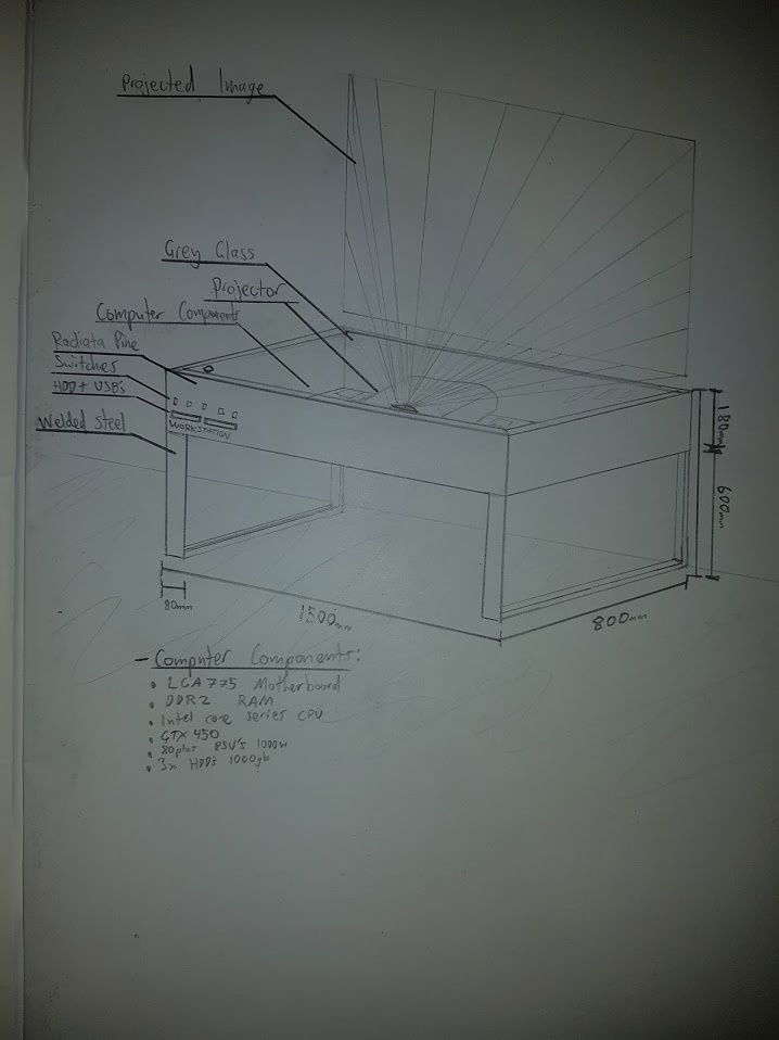 This is my draft build for a desk pc. It includes: -Short throw projector instead of monitor -Tobii Eye tracking instead of mouse -Glass Led Keyboard -Custom cut tempered glass -10x Blue led cooling fans -Lockable Hot swap bays in the front -Usb hub also in the front -2x Thermaltake 500w rgb PSU's