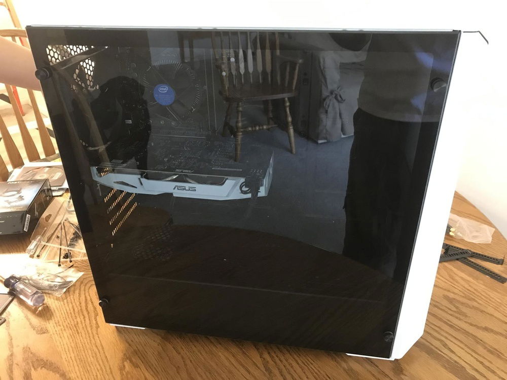 I built this pc for a friend who originally wanted a $350 laptop capable of AAA gaming. I slowly convinced him that a proper PC was the way to go, so the parts started. The CPU and motherboard were bought in late 2017, and it was originally going to be running on the igpu (mining craze), and the 2200g and i3 8100 hadn't been released yet. The i3 7100 was selected over a g4560 because its igpu is slightly better (hd530 over hd510). Long story short, he ended up finding a 1060 dual that was clogged up with that nasty cigarette tar/dust combo for a decent price for sale, so he bought it. This particular configuration was probably only running for ~5 months before a motherboard and cooler swap, followed by a platform upgrade.