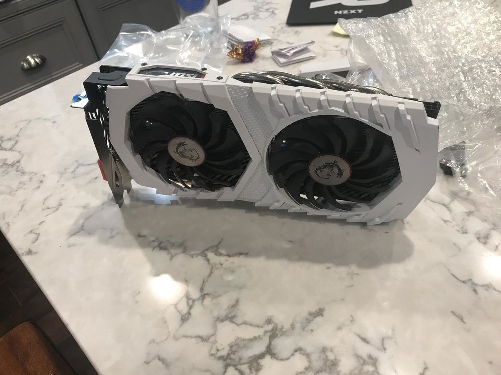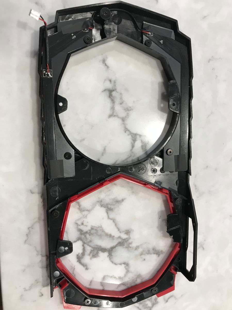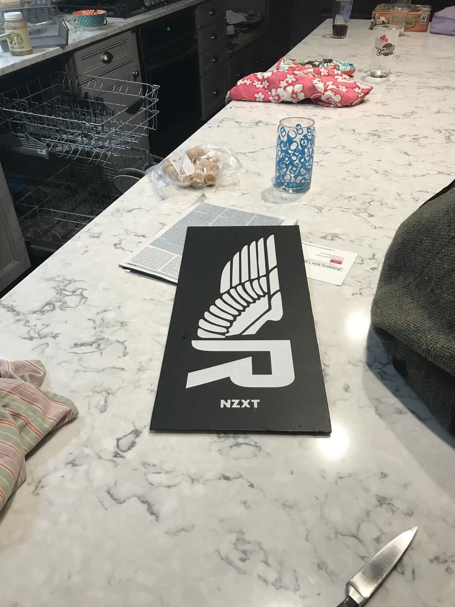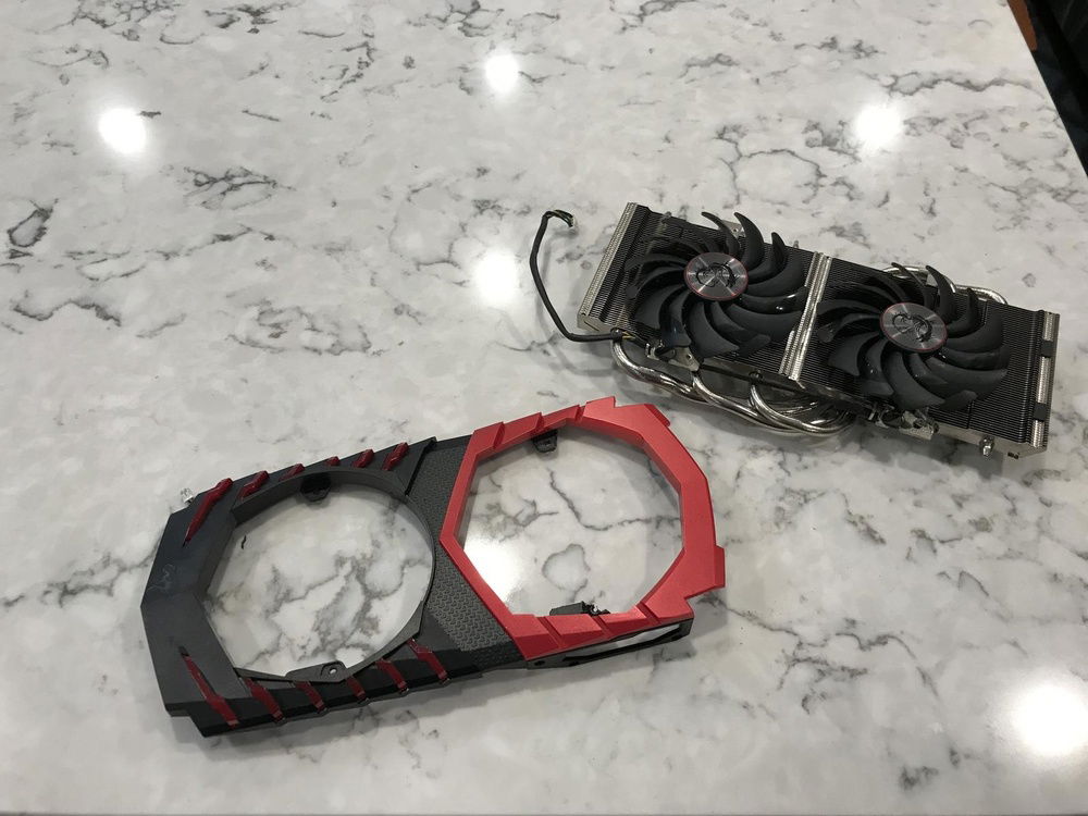As for the cosmetic changes, I created a custom made vinyl wrap for both the front and side panel, as well as the cable management bar. I took the shroud of the graphics card, the red part of the front panel, and the cable management bar into the paint booth and gave them a clean coat of white paint. I also swapped in an old cryorig h7 with an EK vardar RGB fan I had sitting around. Personally, I would have done away with the red cougar vortex fan, but the owner of the pc wanted to keep it for it's performance.