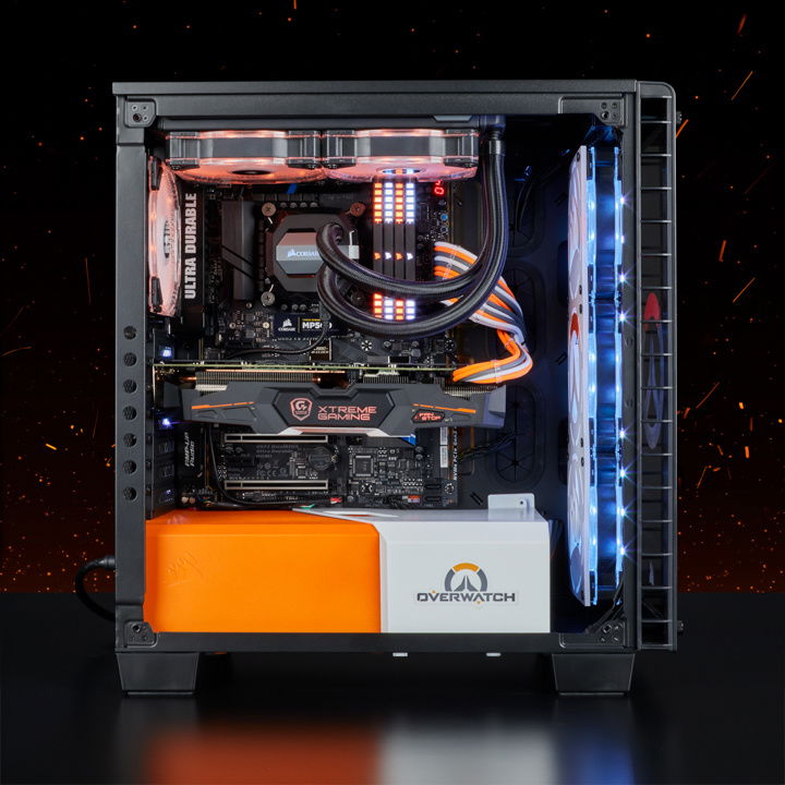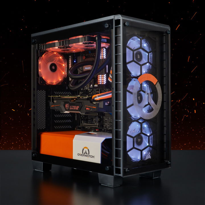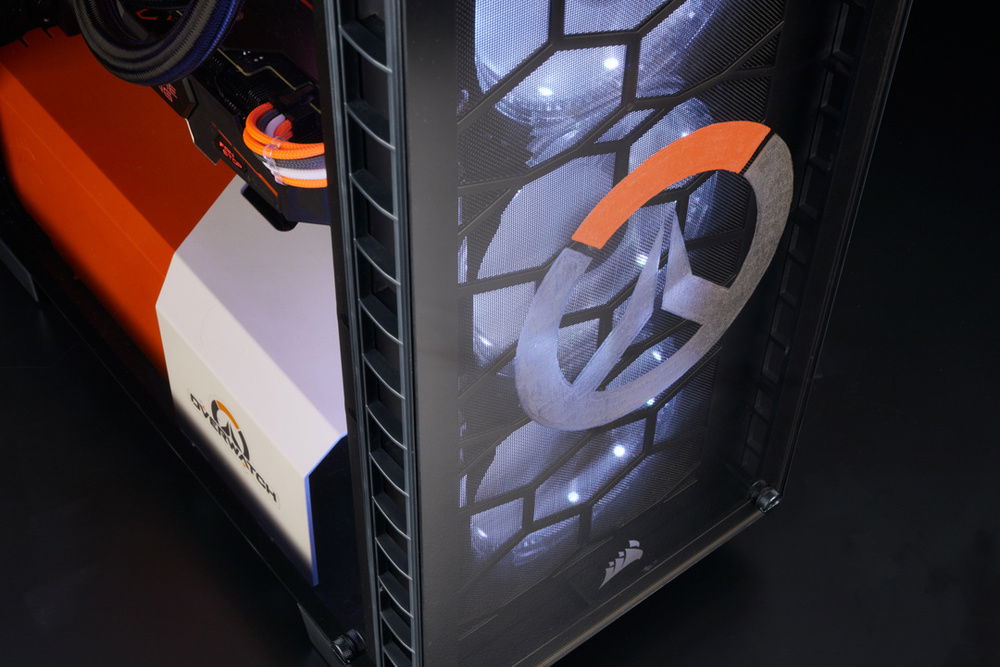I got an offer to make a build with a Overwatch theme, I used Corsair Crystal 460X as the base. To have everything fit together I also did some mods to both the case and other hardware, for example custom fan-grill, engraving the glass frontpanel and painting different parts.