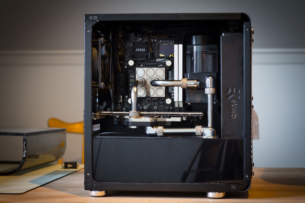 This was my first real casemod as I only built scratchbuilds before this. I modified the case to fit a 240mm radiator and built a custom-loop with chromed copper tubing to fit the overall black-chrome theme of this mod.