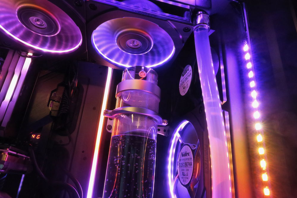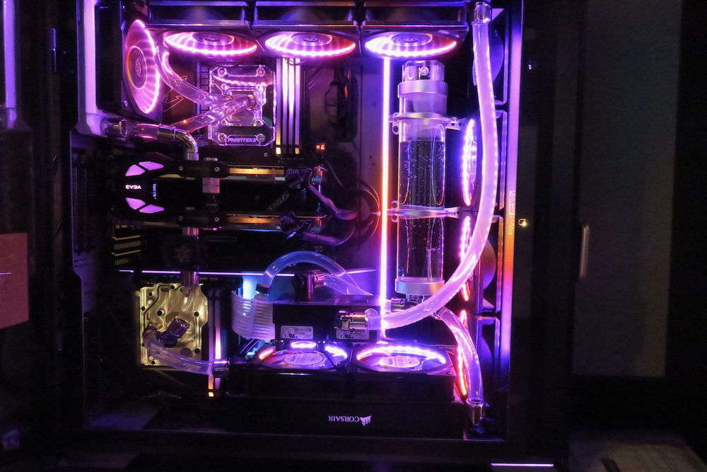 Case choice was inspired by Jayztwocents, and I'm impressed that I've been able to fit 13 120mm fans and dual 480mm + 360mm + 240mm + 120mm rads, all while "un-hiding" the second system, relative to how things were set up in the Evolv X
