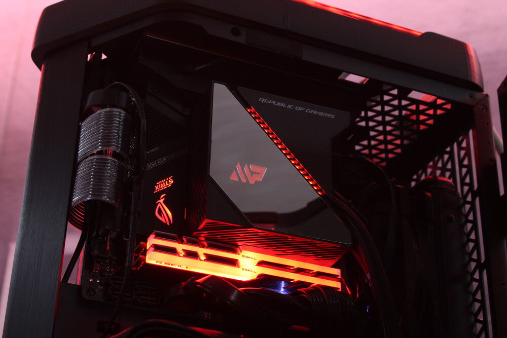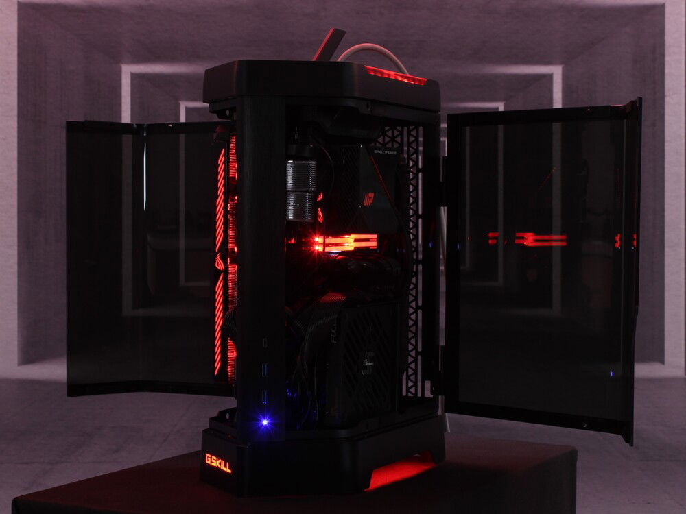 An all Asus ROG mini-ITX build in a G.skill Z5i modified case.