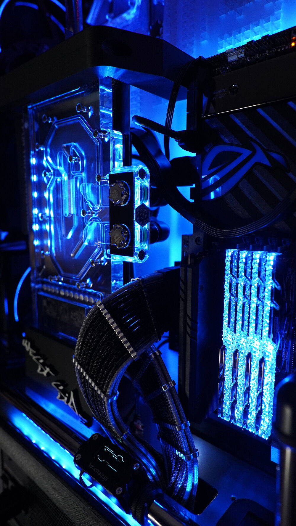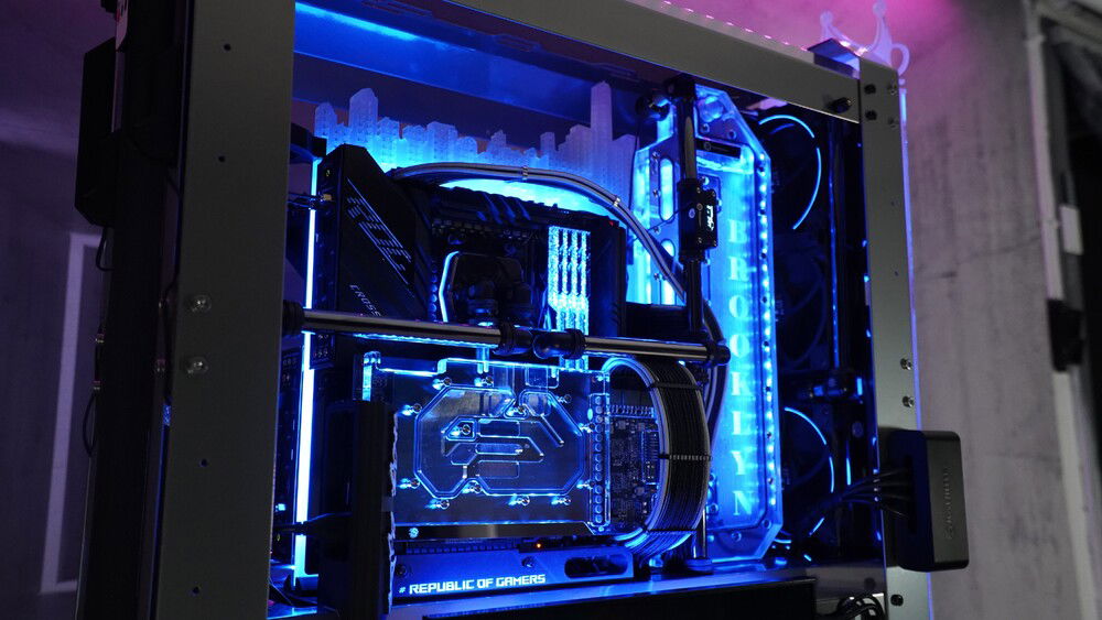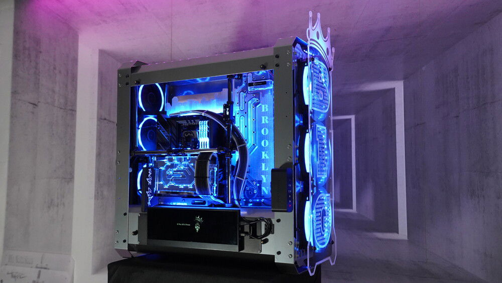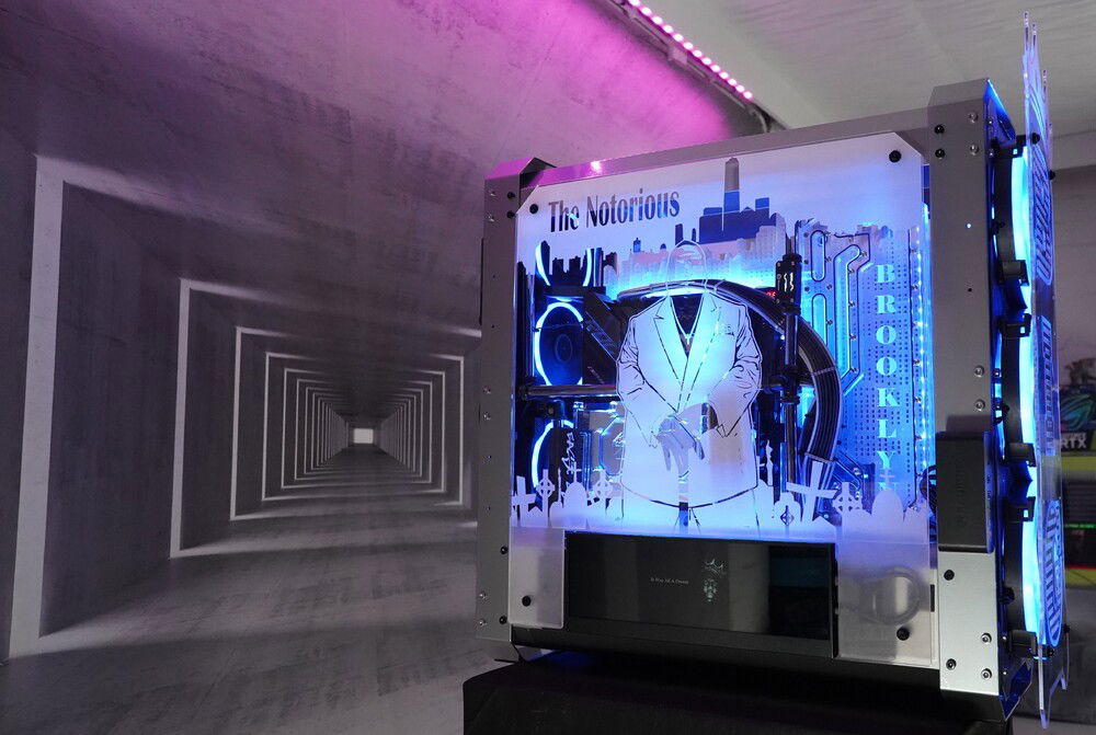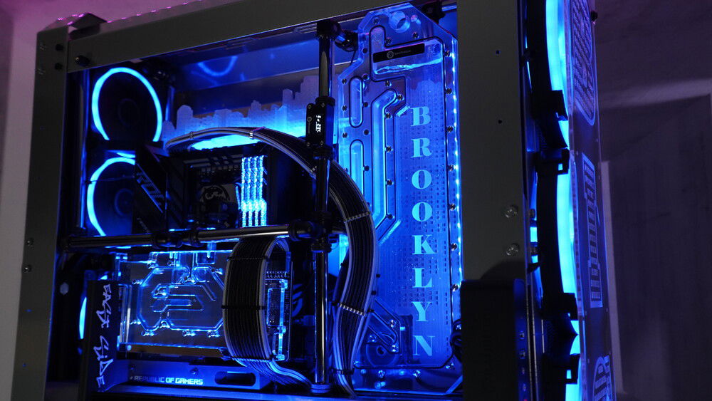 To honor my favorite 90's rappers BIG and 2Pac... I made this BONKERS DUAL system casemod packed with currently Asus ROG greatest platforms. I needed a BIG case with place for two PSU's so I came up with the Raijintek ERIS EVO (EPIC CASE) Custom powder coted in Gunmetal grey, custom Brooklyn skyline motherboard tray, custom Brooklyn style distroplate, integrated Lamptron ultra wide hardware monitor screen, custom themed laser engraved front and side panels etc....