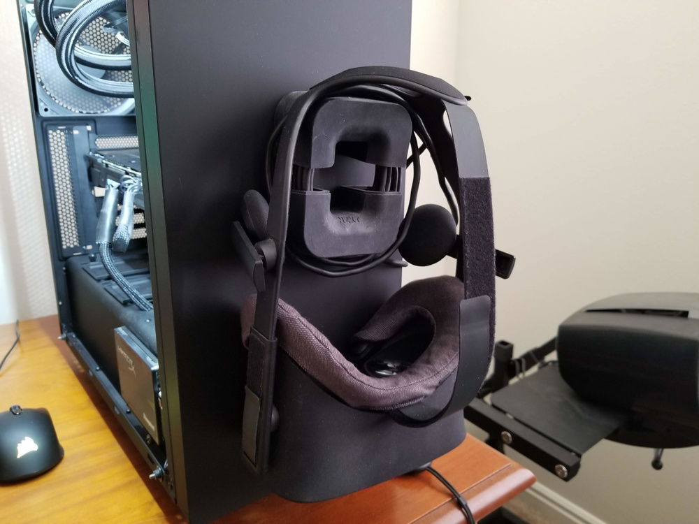 Wanted something that would fit a small space and be comfortable to work and race. Used 3 monitors before and it took a lot of space, plus all the cables drove me nuts. VR headsets are great for sim racing and this magnetic puck by NZXT is perfect to store it right next to the cockpit.