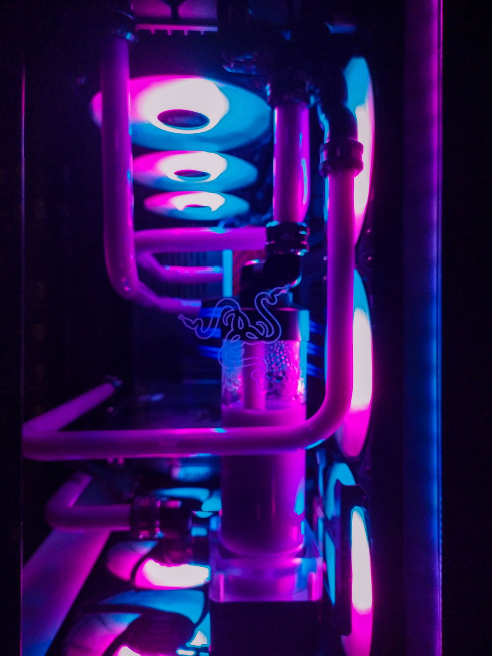 I wanted to add a second radiator, but it just wouldn't fit anywhere in height. Therefore, I recently purchased a Lian Li PC-O11 Dynamic (Razer Edition) case and a second 38mm radiator. I really wanted the assembly in white and purple colors, but, unfortunately, Lian Li cases are not sold either in Belarus or in Russia. I was lucky to find a black Razer Edition. Perhaps in a couple of months, I will still repaint it white, but I do not know how to do this, so for now this is only in the plans)