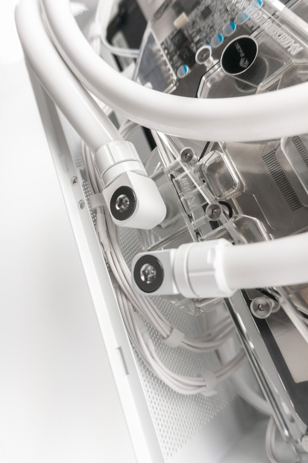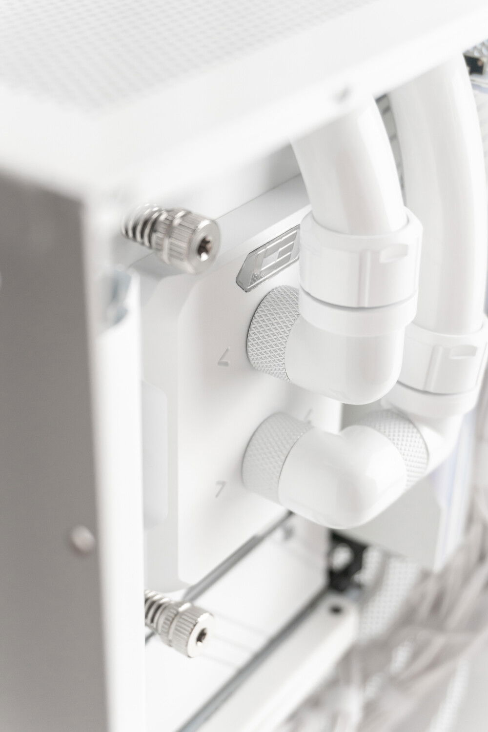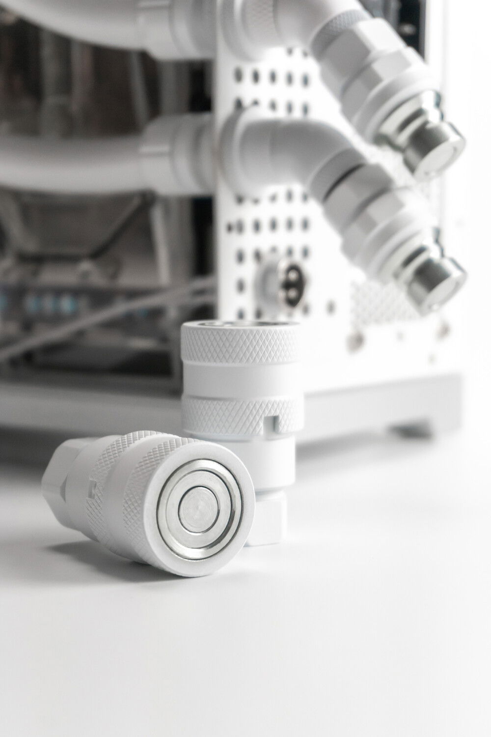 I thought about how the custom loop would look, counted the fittings, placed all the orders and while my parcels were on the way, I started repainting all the components. If anyone is interested, I used KUDO RAL9003 spray cans. The paint goes on well, the color is very close to perfect white, a little warmer than A4 sheet.