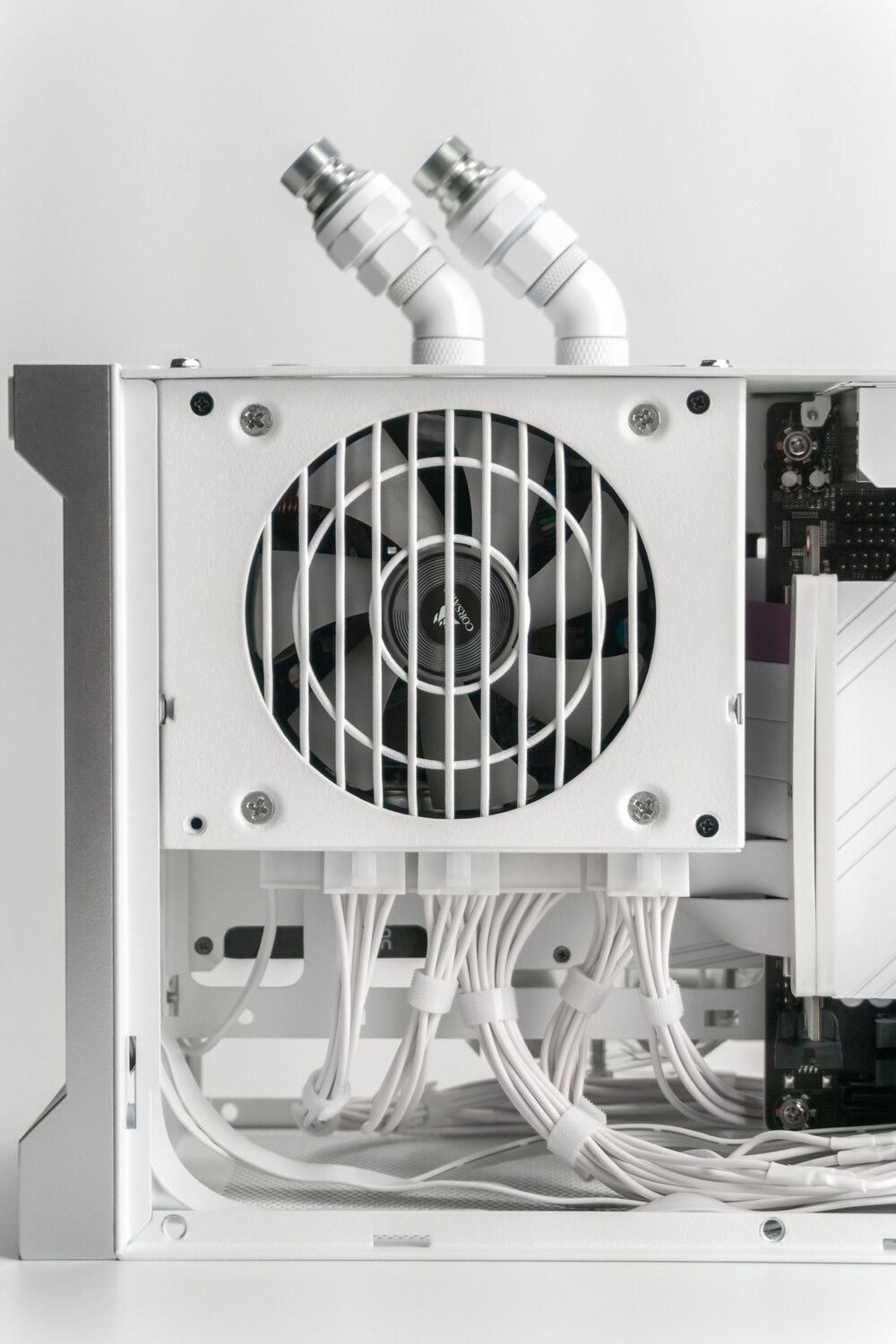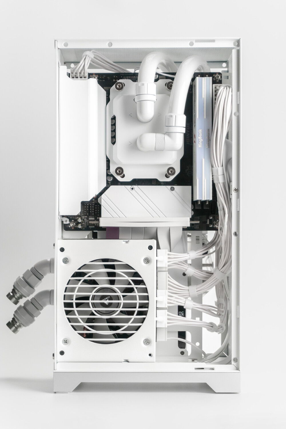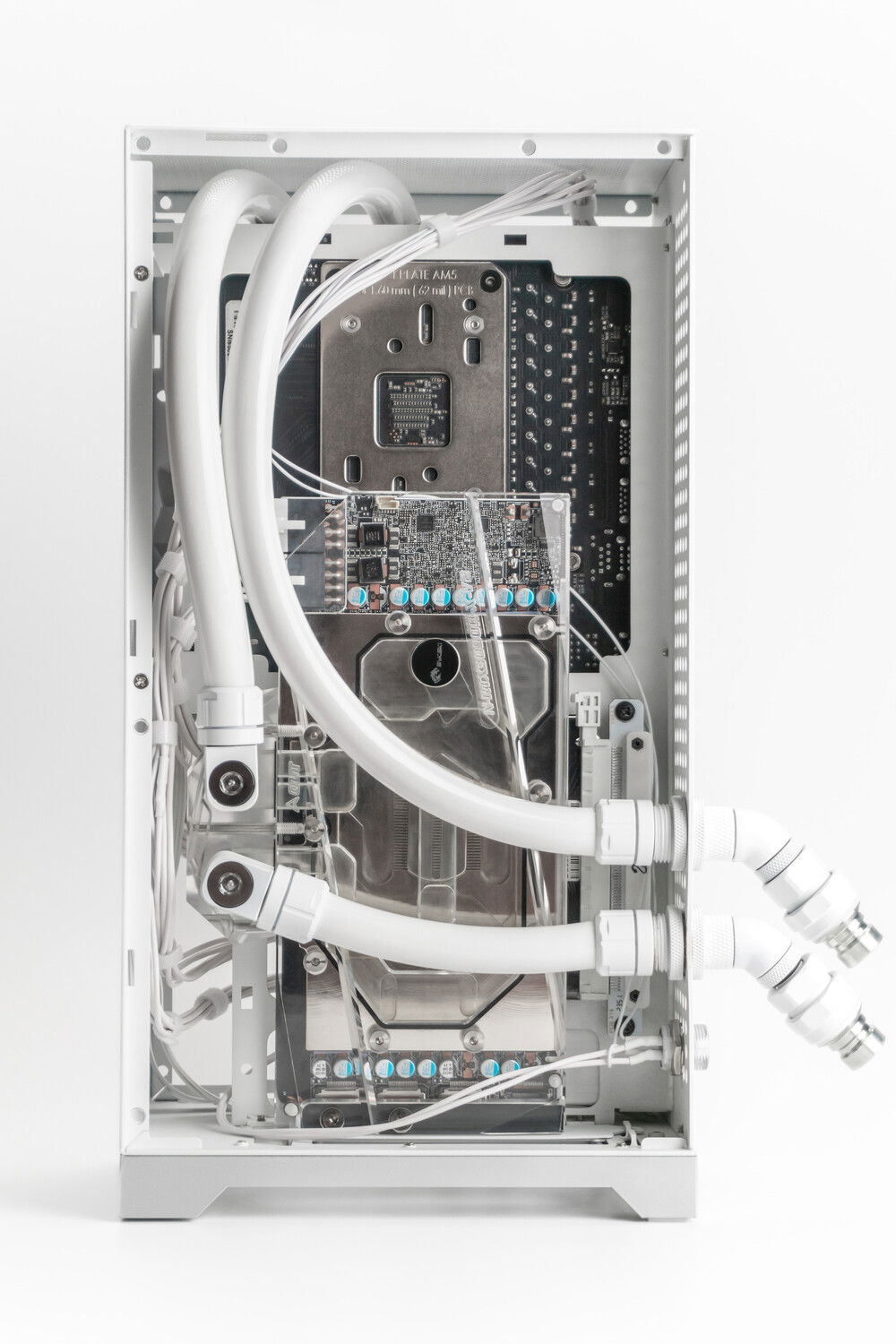 I thought about how the custom loop would look, counted the fittings, placed all the orders and while my parcels were on the way, I started repainting all the components. If anyone is interested, I used KUDO RAL9003 spray cans. The paint goes on well, the color is very close to perfect white, a little warmer than A4 sheet.