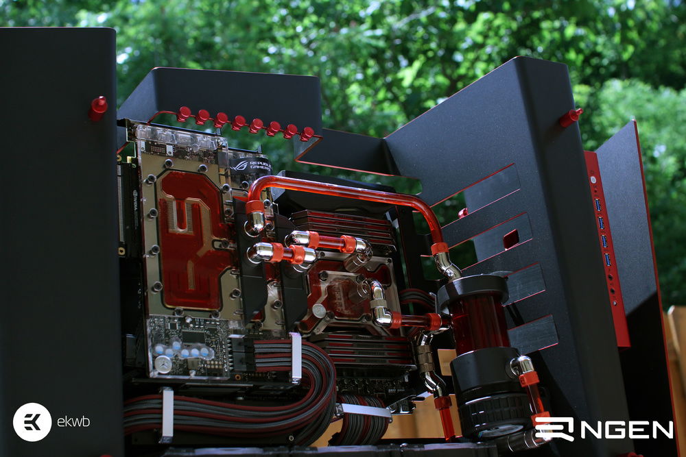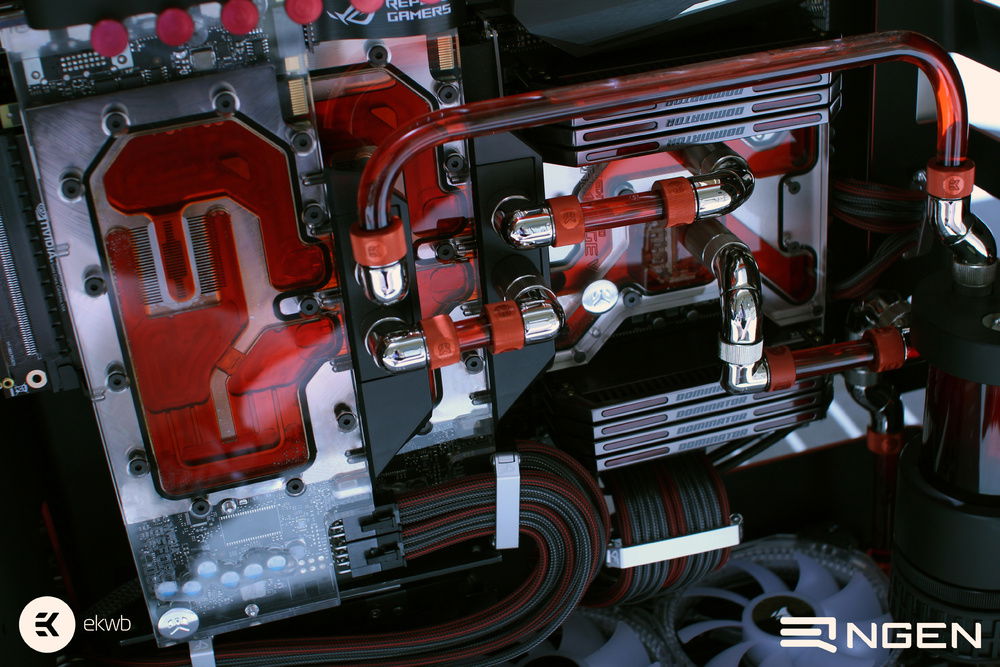 For version 2.0 of the S-Frame, there's not much to the story. The design came about from my desire to use the recently launched EKWB single slot 1080 Ti blocks. At the time, the lack of DVI port allowed for a truly full coverage block and, in an attempt to make the most of showing off the fully cover blocks, the staggered SLI setup became the end result. The one important bit of history for NGEN, however, is that this was our very first sponsored build courtesy of EK Water Blocks.