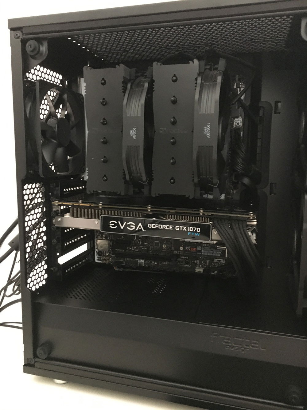 Also added a Noctua NF-S12A PWM chromax.black.swap 120mm in the back as exhaust and 2x Noctua NF-A14 PWM chromax.black.swap 140mm in the front as intake.
