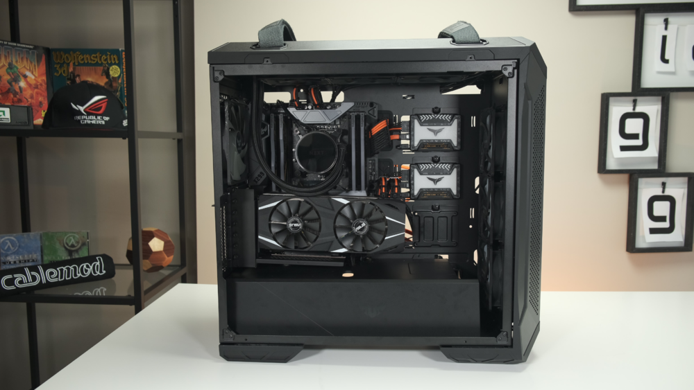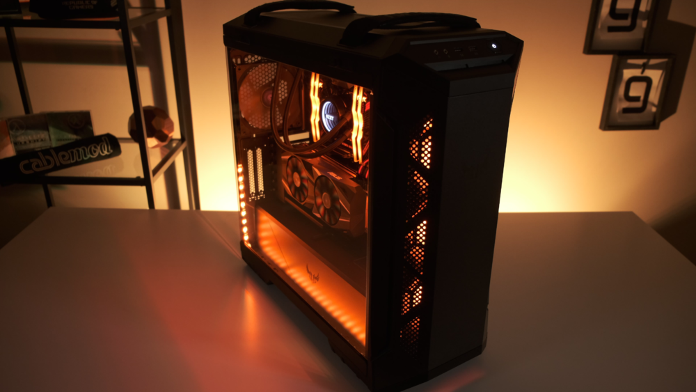 Powered by our partners ASUS, Cablemod, NZXT, Team Group and Seasonic, this machine is themed after ASUS TUF Gaming initiative, and uses components from members of TUF Gaming Alliance.