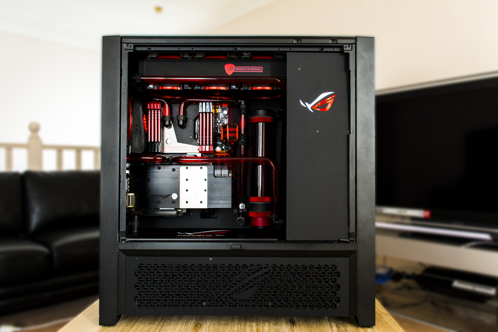 The idea behind this build was to get as much ROG packed into one build as possible. Have since replaced the fluid with Pastel Red for a more solid look.