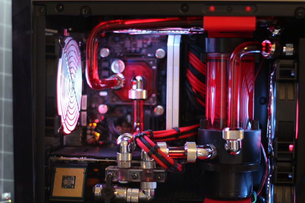 Aside from GGF Events on Youtube, this is the first custom watercooled build inside the NZXT H200i! I'm pretty proud of that, but it wasn't easy to achieve as there were SO many parts to cram inside of such a small box. And that's where I got the name "Redbox"! It reminded me of the beloved movie rental station that I may have actually used once, lol! Thanks to the fact that the custom gigabyte card was actually pretty small after replacing the heatsink with an EK Thermosphere block and modding (cutting) the backplate, I was able to fit it inside next to a pretty standard EK Pump/Res combo which fit perfectly inside that strange, but sleek looking, colored metal ribbon piece that NZXT is known for. I built it with hardline tubing, but the stuff I used from Bitspower must have been pretty old and mostly acrylic because it was thin and it cracked whenever I cut it. So I cheated first time around by running a soft tube from the cpu block around the top and to the backside port on the radiator. I went back some time later and redid the loop with some nice Thermaltake PETG, 100% hardline and with some red fluid it looked great! Now, unfortunately I had to tear it down eventually and sell off the parts, but I have another PC project in the works that should be ten times better! I actually had another for a while, the successor to Redbox, but I wasn't really pleased with how that turned out. I wanted to share Redbox since it is my favorite build to date, very proud, enjoy the pics!!!