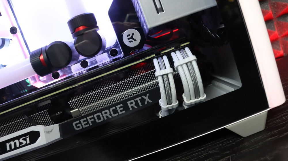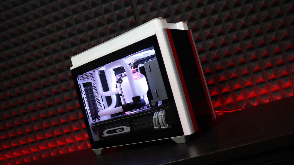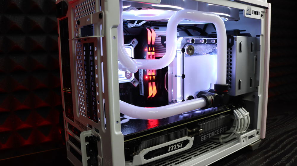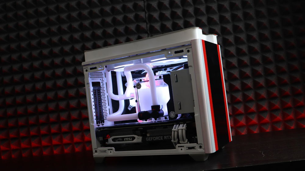 Since in the game everything can take different shape and room re-arrange, I decided to lift up the top panel to place the radiator plus giving it a bit more space. Then the pipes are basically going crazy in terms of constant re-arrangement. Adding an FLT120 on the PSU cover and even custom sleeved extenders making nice cable management and everything to fit inside such a small case giving the idea of possible expansions. Custom backplate on the graphic card and a paint job on the back side of the case with a huge CONTROL logo.