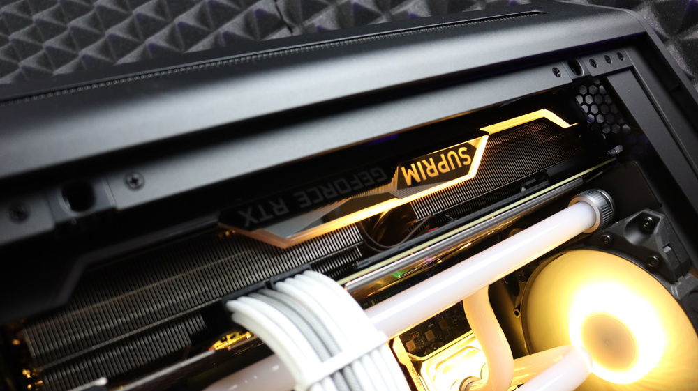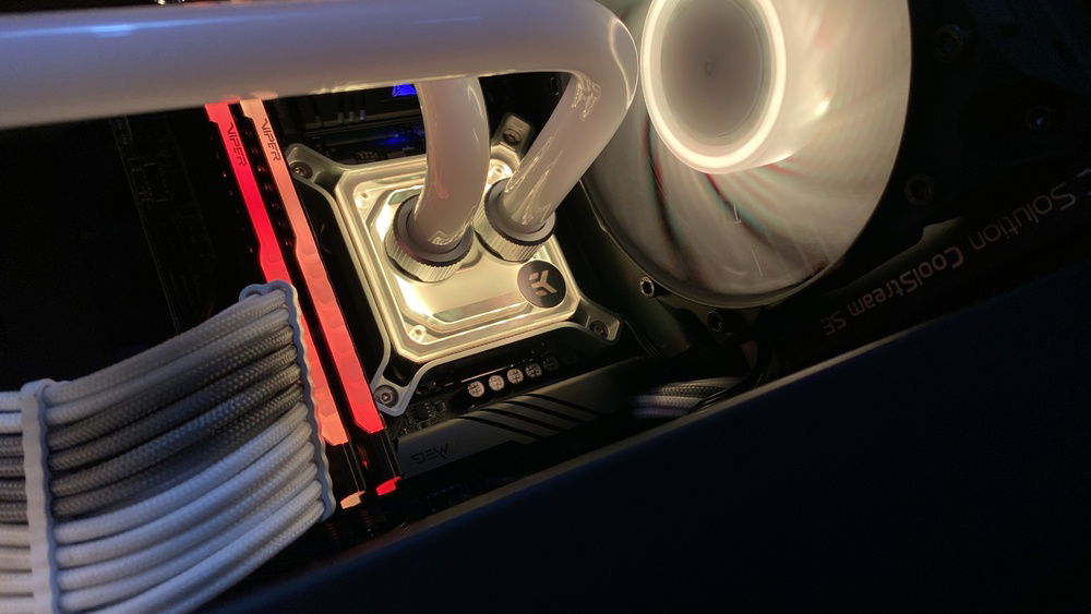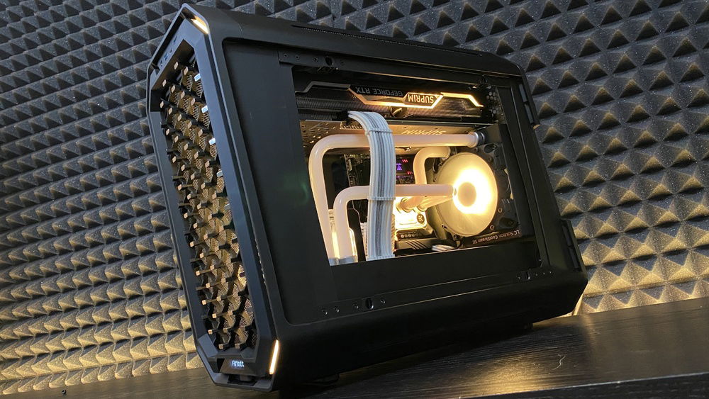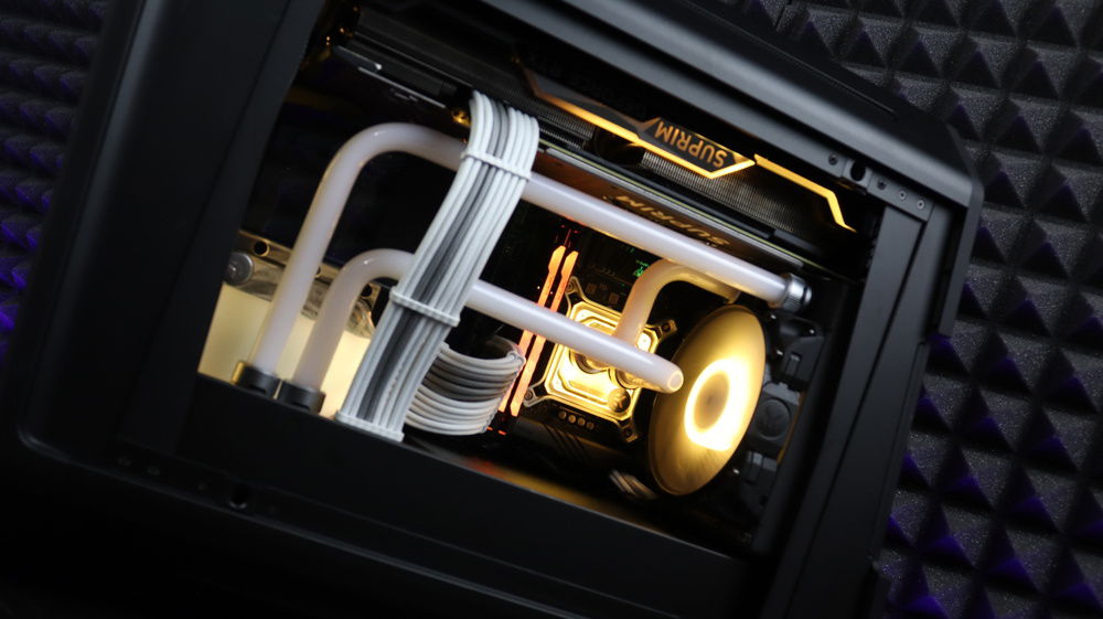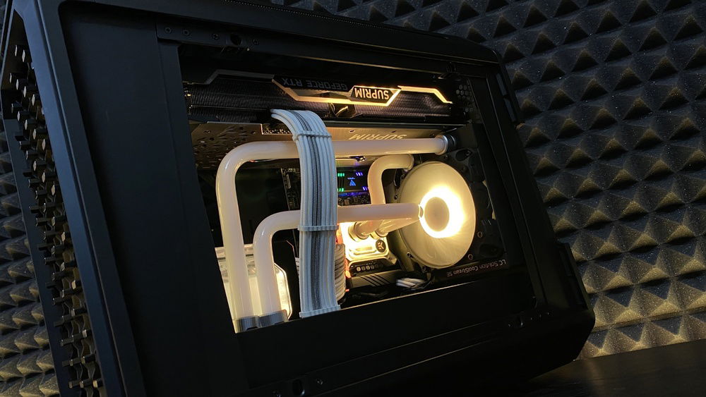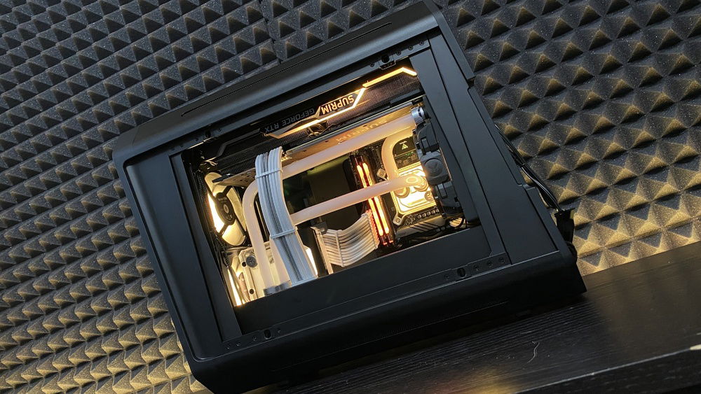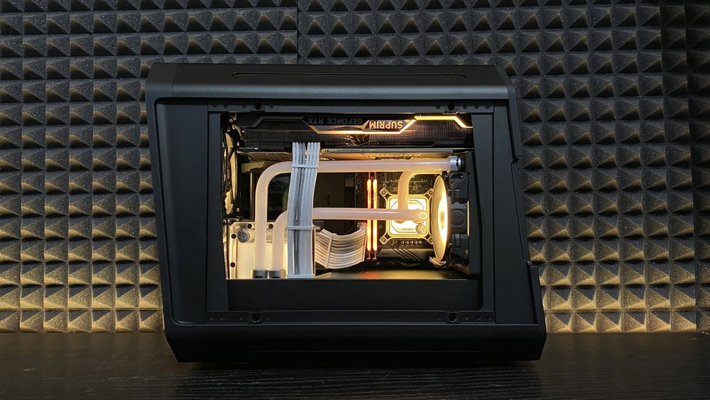 Another miniITX build with a 120mm rad cooling Intel Core i7-10700k and managed to squeeze in MSI GeForce RTX 3070 SUPRIM X.