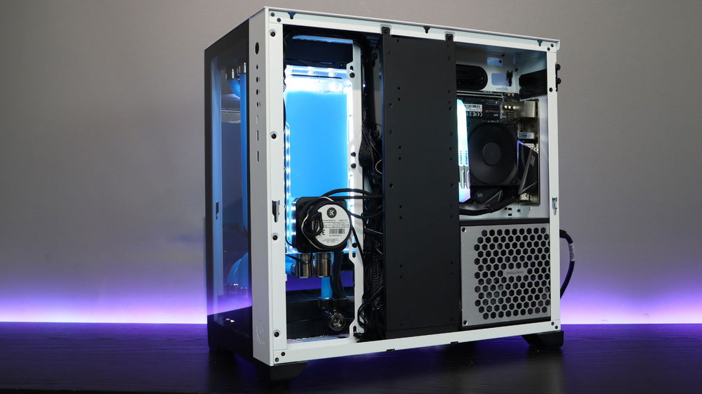 Double system build in one case. Even though it resembles to Lian Li PC-O11 Dynamic, it can fit a miniITX board at the back.