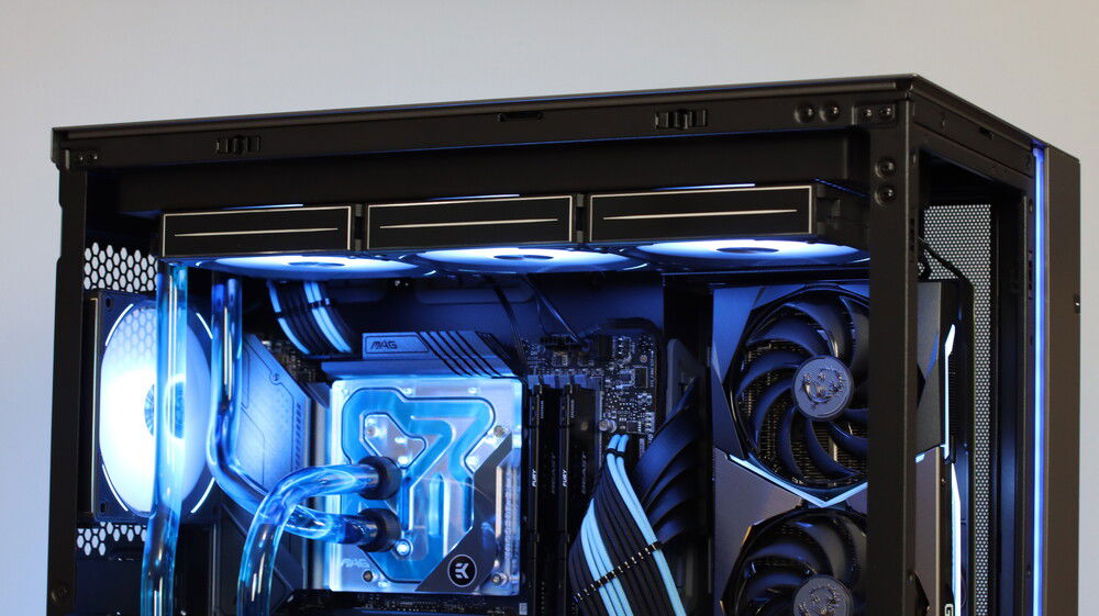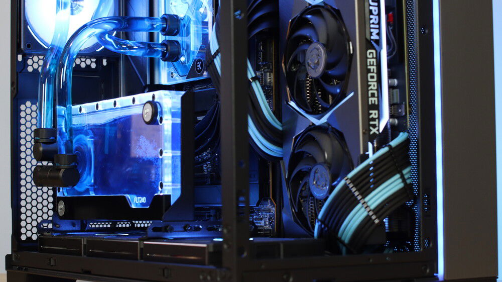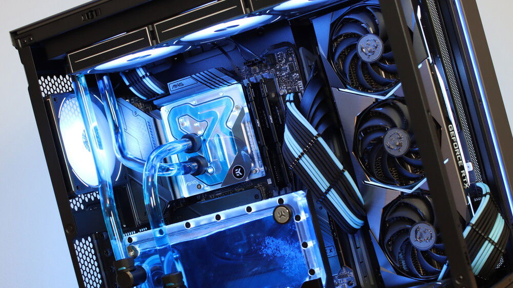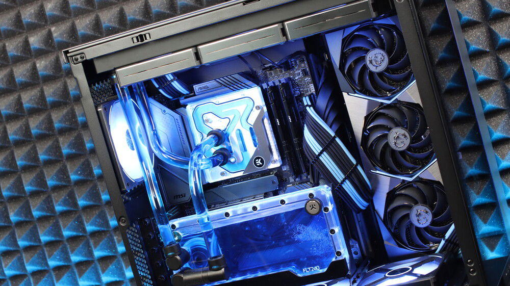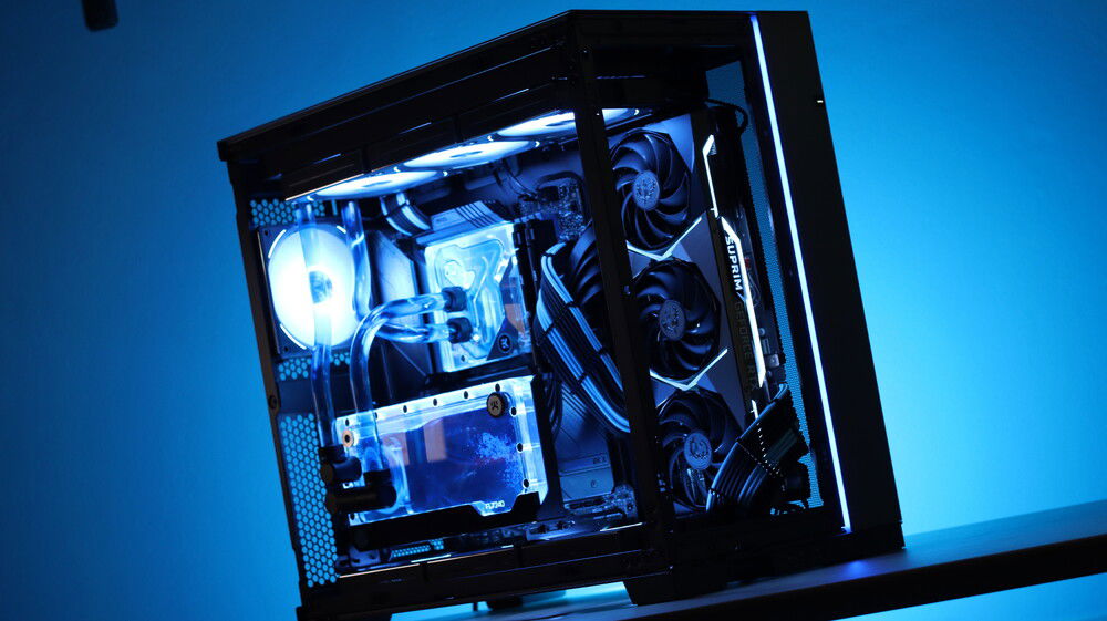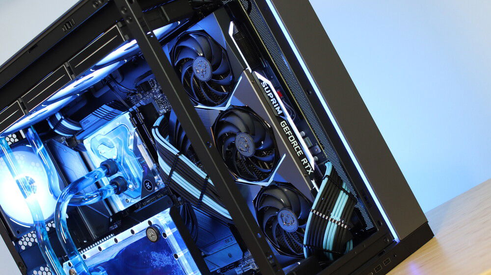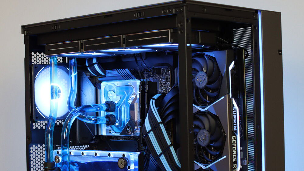 Didn't water cool the GPU, because in the upright position in O11D EVO, RTX 3080 Ti Suprim X just looks amazing.