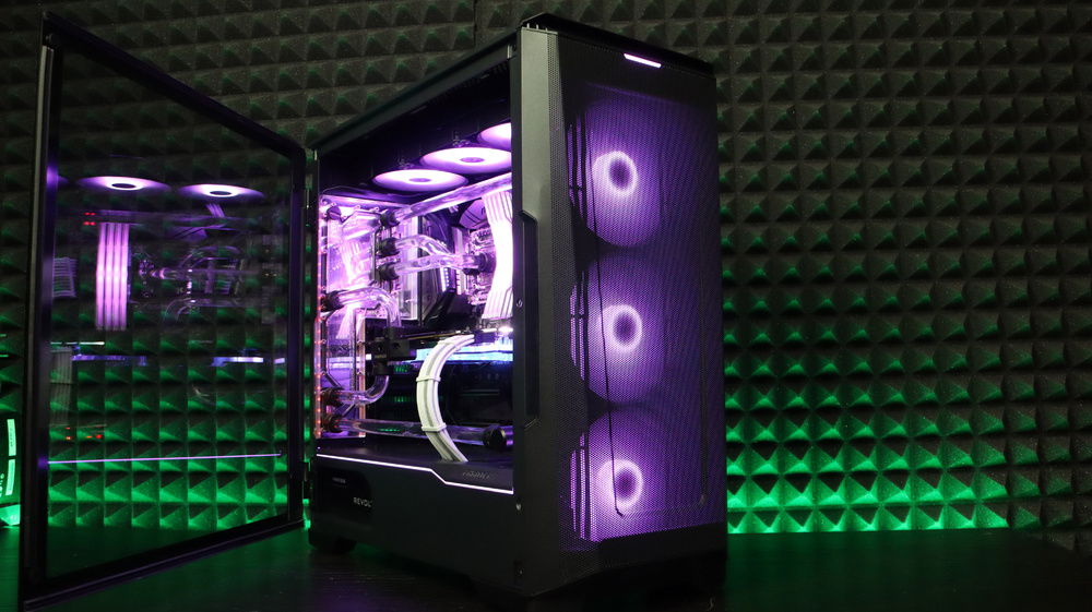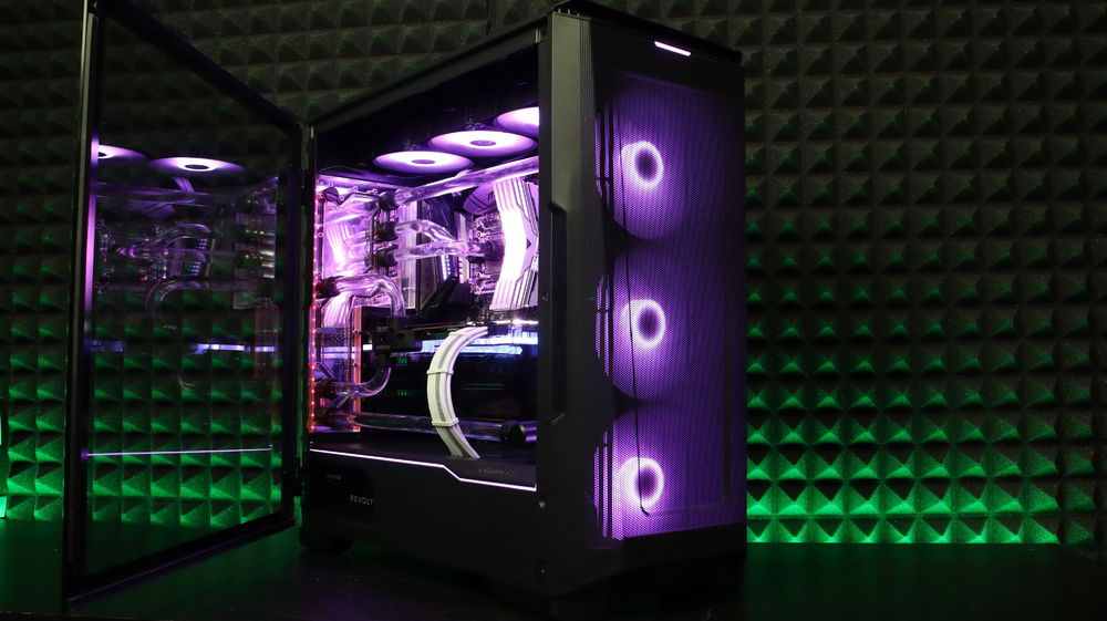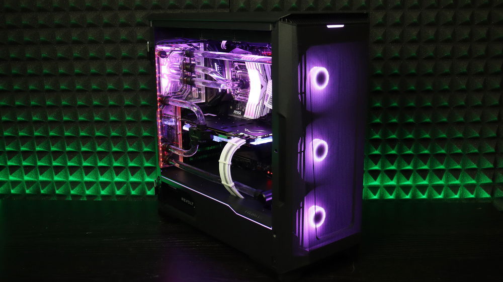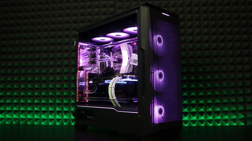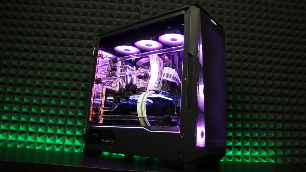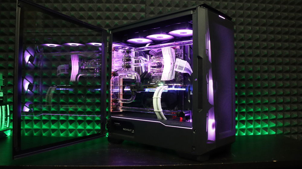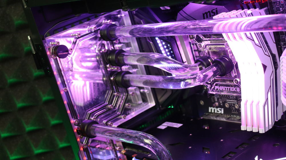 Intel Core i9-9900kf paired up with ASUS GeForce GTX 1080Ti Strix in a full custom loop by Phanteks Glacier in Phanteks Eclipse P500A.